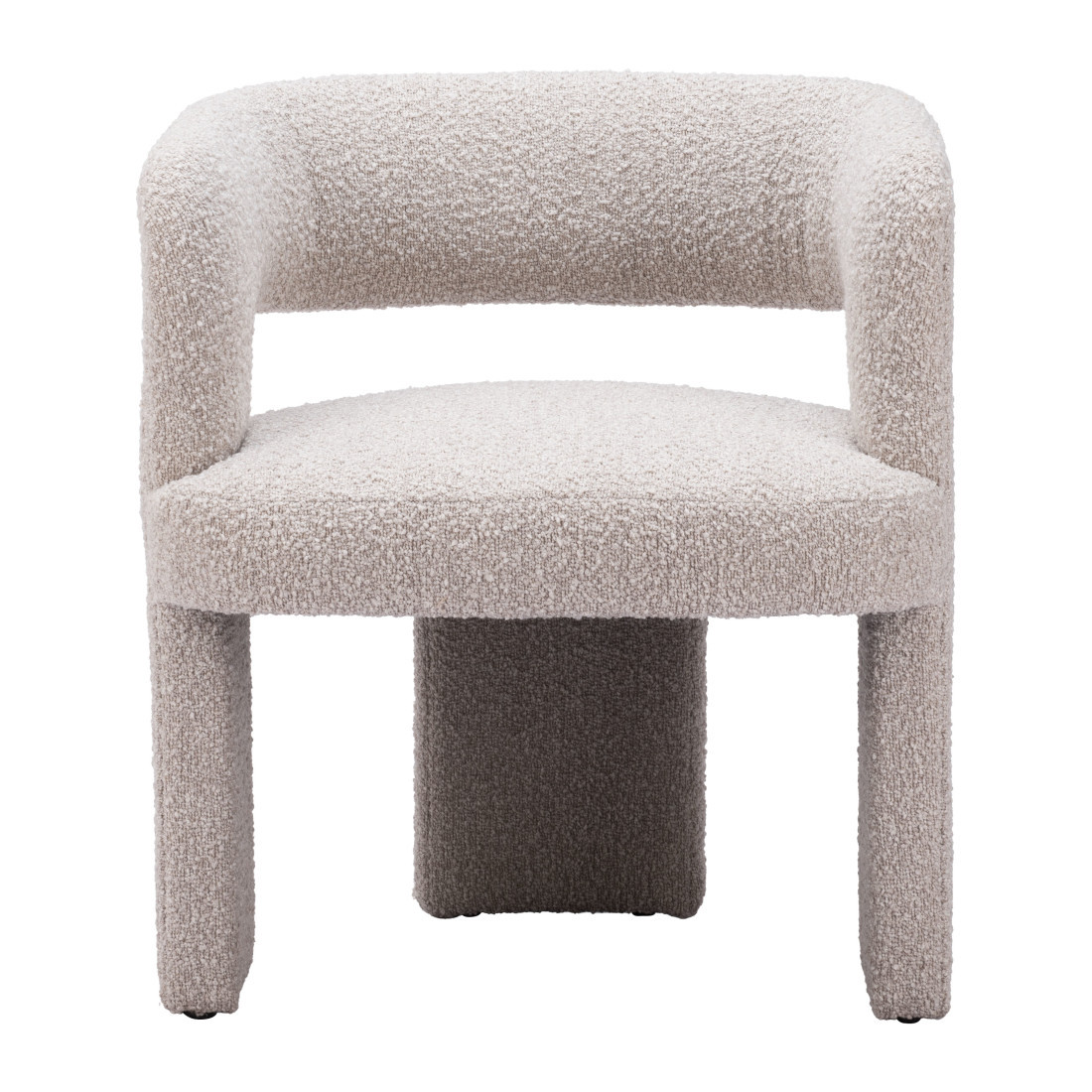 Unique and decorative, this 27-inch beige faux shearling and upholstered arm chair will leave a lasting impression. This sturdy faux shearling and 100% polyester upholstered arm chair comes in a chic solid beige color to give your space just the right look. The sturdy inner frame is built with high quality manufactured wood, includes armrests, and features a tight back that is accented with soft and comfortable cushioning. 31.1-inch h x 27.2-inch w x 25.2-inch d.