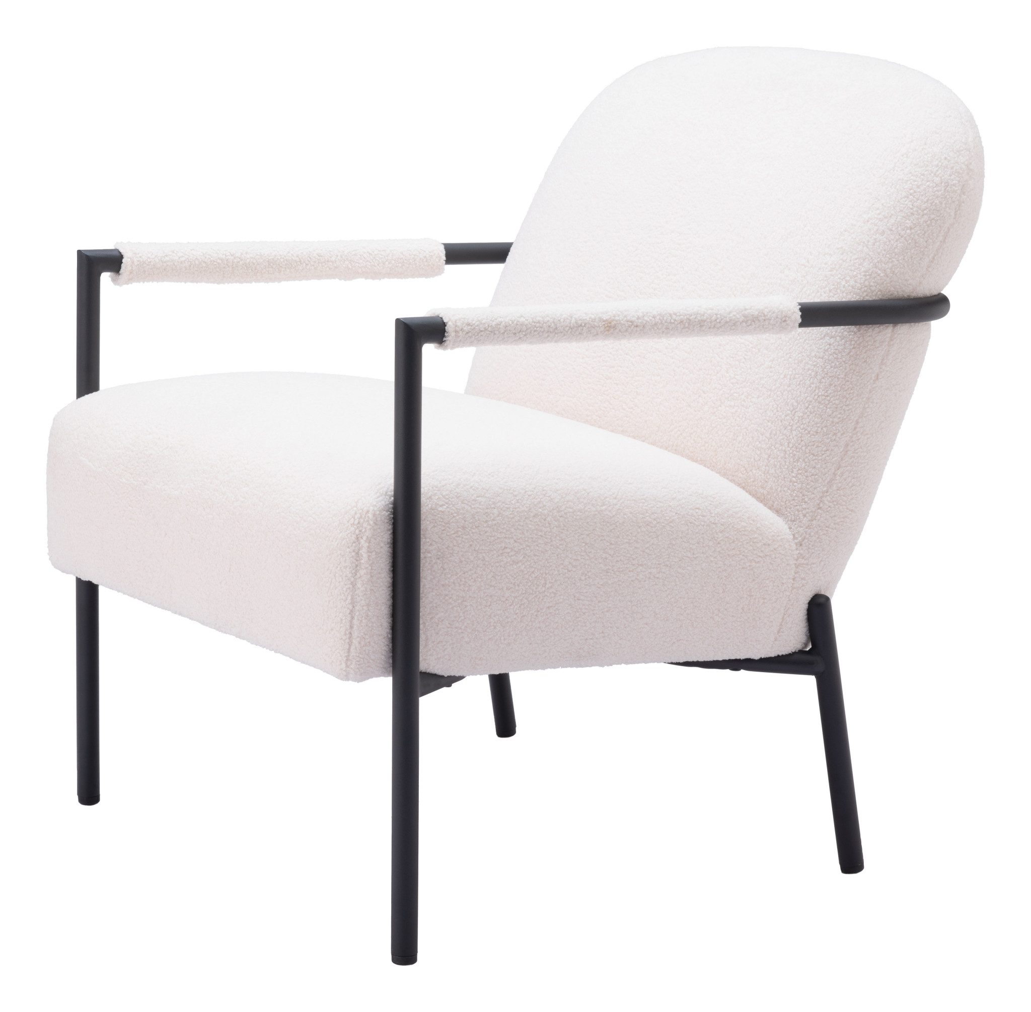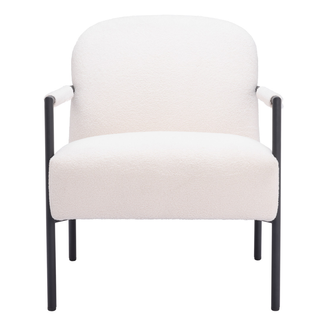 This 26-inch ivory and black faux shearling and upholstered arm chair is the perfect decorative yet functional accessory for your home. Built to last this arm chair is finished in solid ivory faux shearling and 100% polyester to give your room a great update. Giving the chair stability and structure, the inner frame is constructed with high quality steel, includes comfy armrests, and features a fixed back that comes complete with soft and comfortable cushioning. 32.3-inch h x 26-inch w x 33.5-inch d.