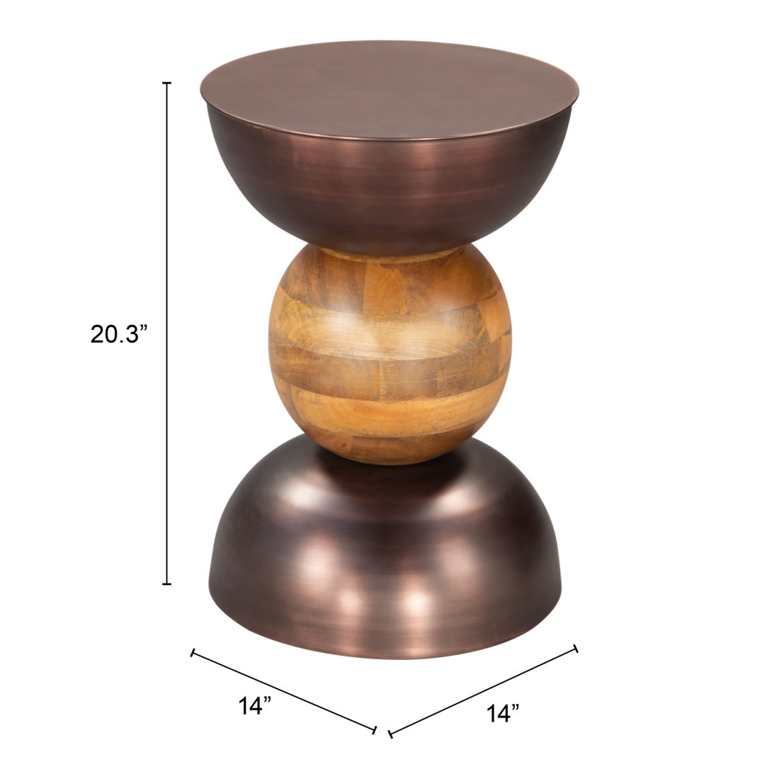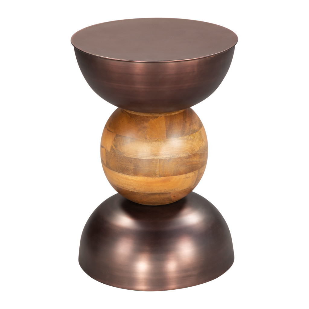 Optimize your space and add some charm to your room with the 20-inch bronze and brown iron and solid wood round pedestal end table. Made of iron and solid wood, the bronze coloration throughout gives this piece an updated and refreshing look. A great accent on either side of the sofa or bed, this adorable end or side table is just what you need. You can also use it as an entryway table to hold your keys. 20.3-inch h x 14-inch w x 14-inch d.
