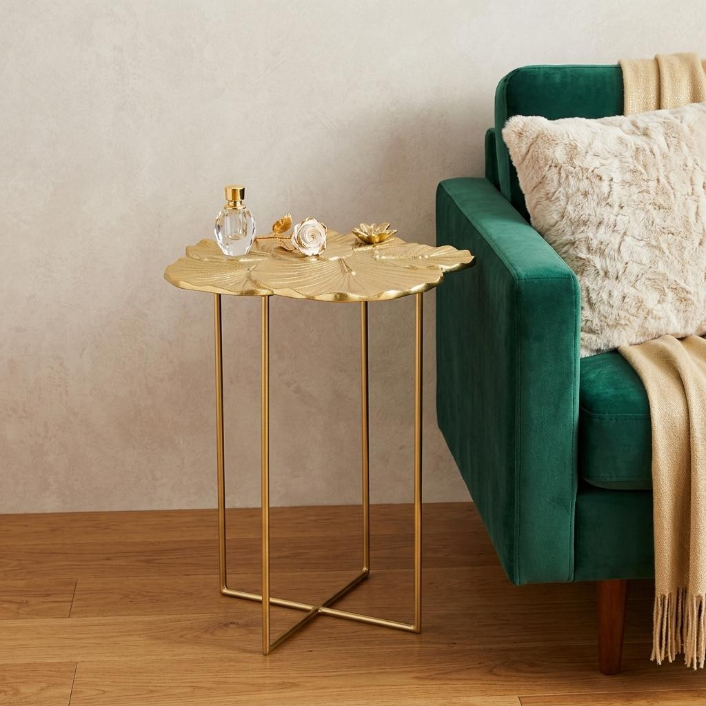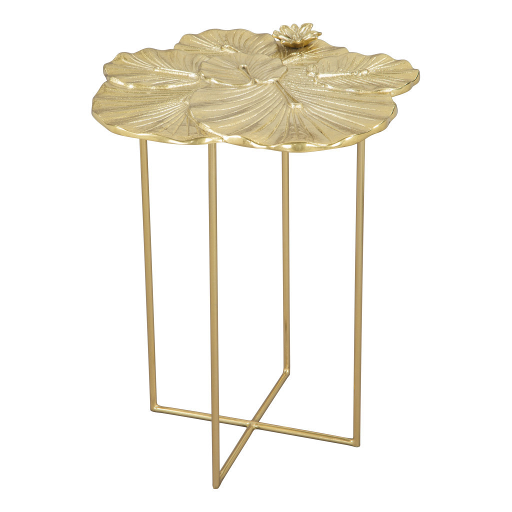 Show off your exquisite taste with this 21-inch gold aluminum and iron cross legs end table. A sleek gold monotone color gives this iron and aluminum table a fresh and updated look. Side tables are a great way to flank your sofa, use as an accent next to your favorite chair, or can even be used bedside. You can also use it as an entryway table to hold your keys. 21.3-inch h x 17-inch w x 17-inch d.