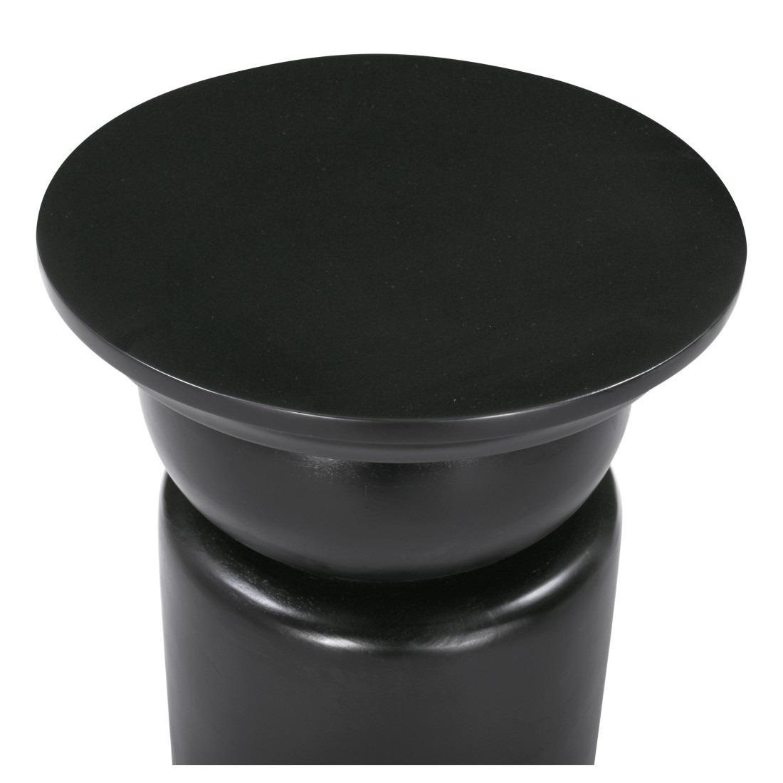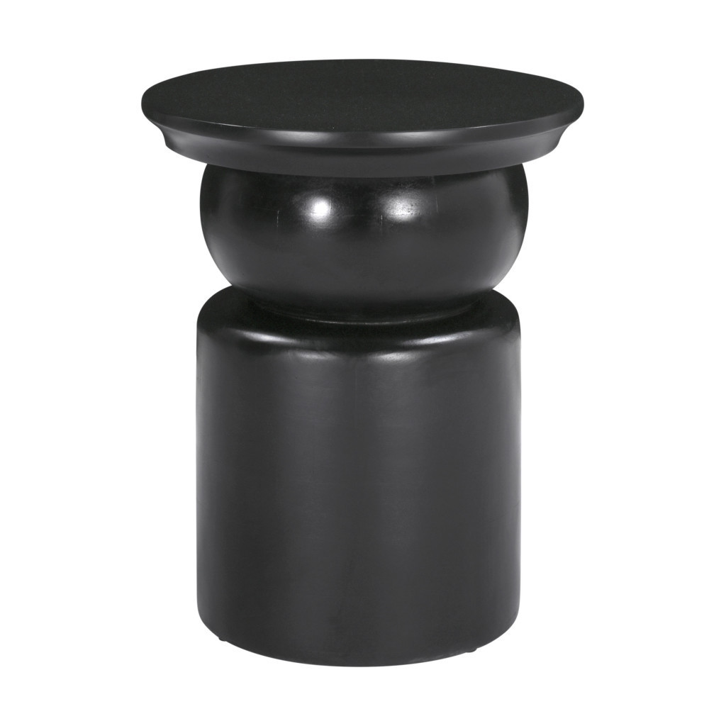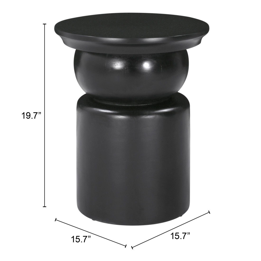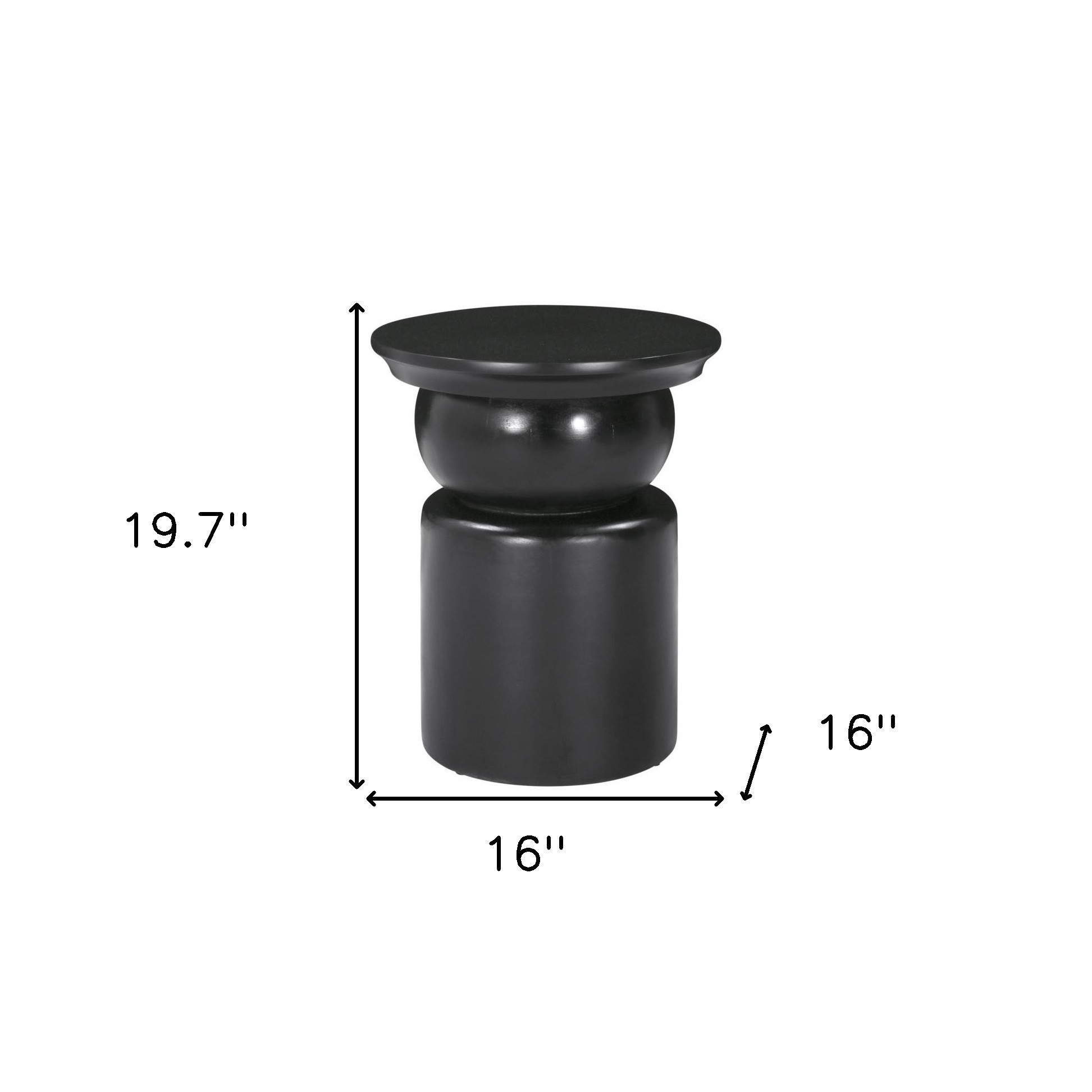 Optimize your space and add some charm to your room with the 20-inch black solid wood round drum end table. This unique cinched geometric pedestal table is made from solid wood in a black color throughout the base and top. An ideal location for placing your snacks and drinks, and a place to keep your lamp, frames, or other accessories. You can also use it as an entryway table to hold your keys. 19.7-inch h x 16-inch w x 16-inch d.