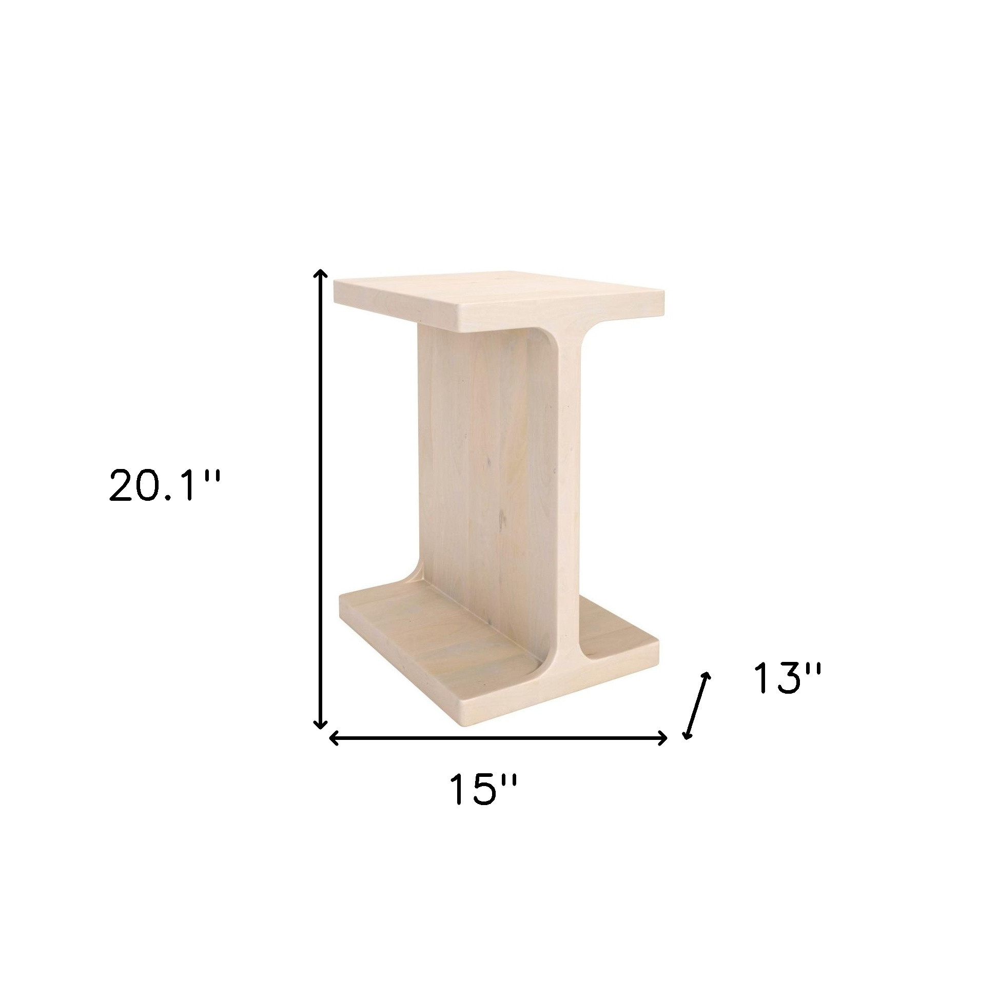 Distinctive in style the 20-inch natural solid wood pedestal end table radiates a versatile charm. Made of solid wood, the natural coloration throughout gives this piece an updated and refreshing look. Side tables are a great way to flank your sofa, use as an accent next to your favorite chair, or can even be used bedside. You can also use it as an entryway table to hold your keys. 20.1-inch h x 15-inch w x 13-inch d.