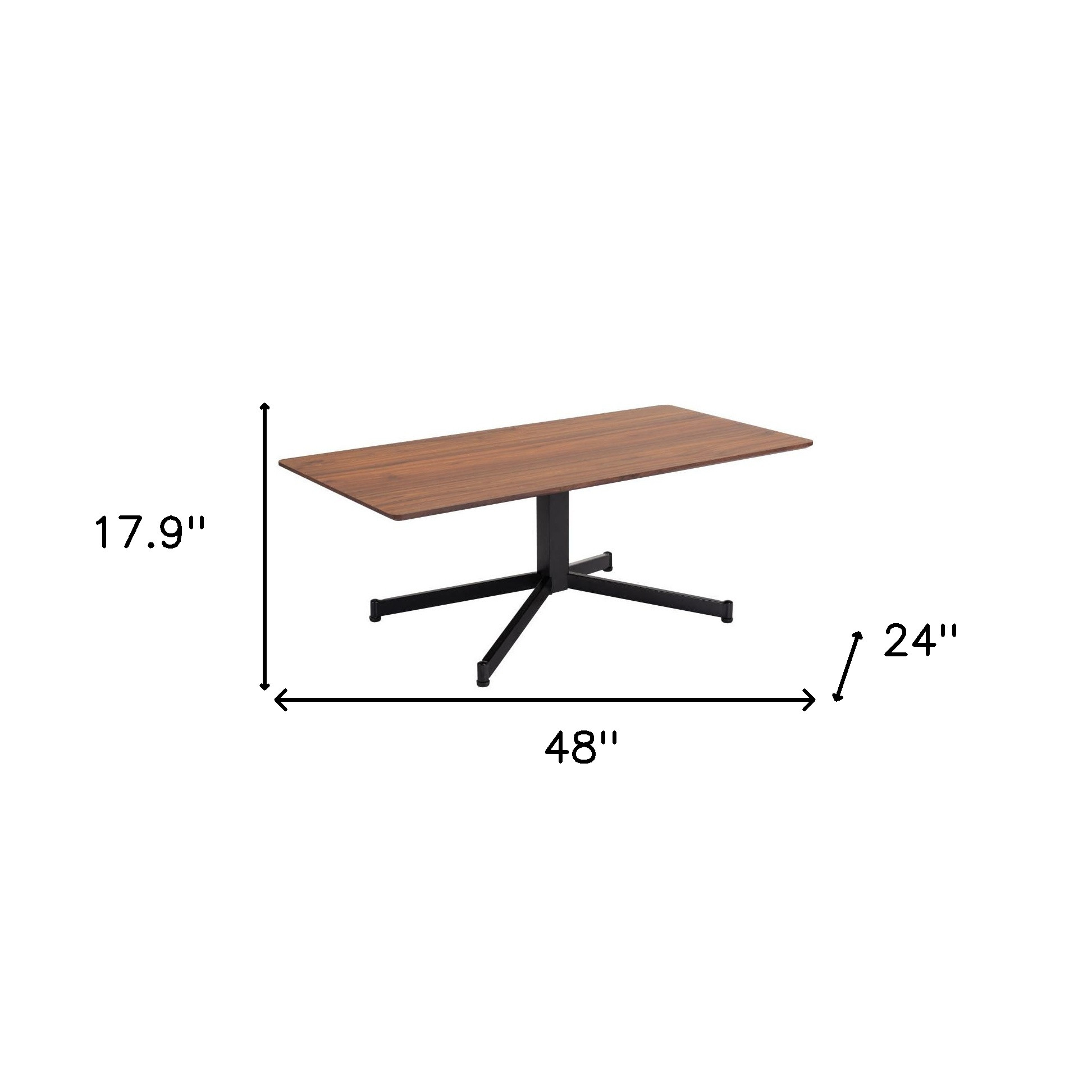 This stylish 48-inch brown and black wood and steel pedestal coffee table is sure to inspire compliments no matter where it sits. The height adjustable base of this table is made from steel in a black color that creates a good looking visual contrast to the brown manufactured faux wood tabletop. This classic rectangular table will be a great accent in any room it has an attractive design that will definitely breathe some fresh air into your interior. 17.9-inch h x 48-inch w x 24-inch d.