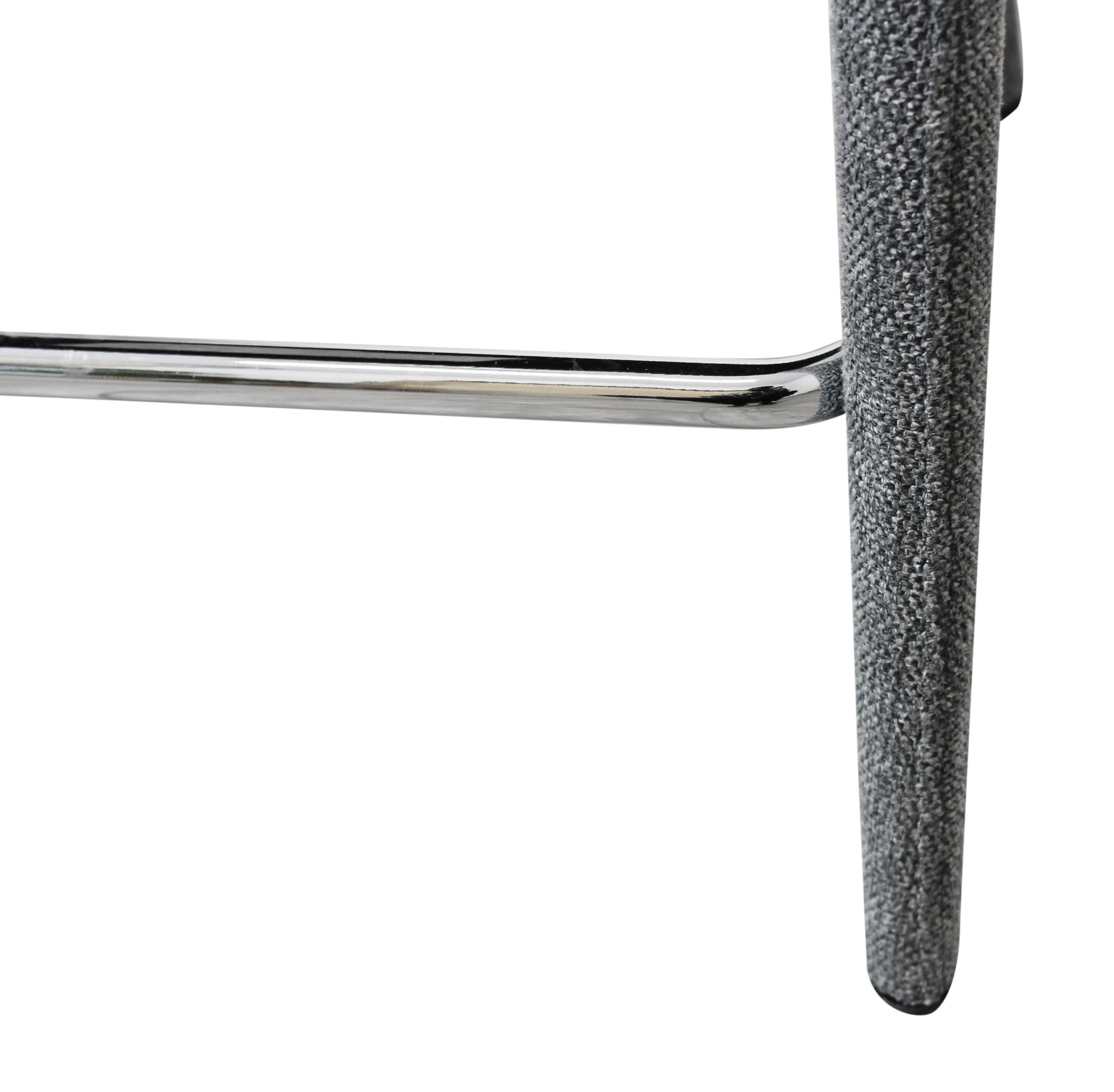 The perfect way to add some extra seating in your home, this 25-inch gray metal and fabric low back counter height bar chair will elevate the look and vibe of your room. A solid gray metal frame is finished off with a matching gray upholstered seat, giving this chair a chic monotone look. Designed with armrests for your comfort, this chair also features a footrest for comfort and convenience. A low back mixed with a rectangle shaped seat design makes this chair both comfortable and fashionable. 35-inch h x 21-inch w x 22-inch d.