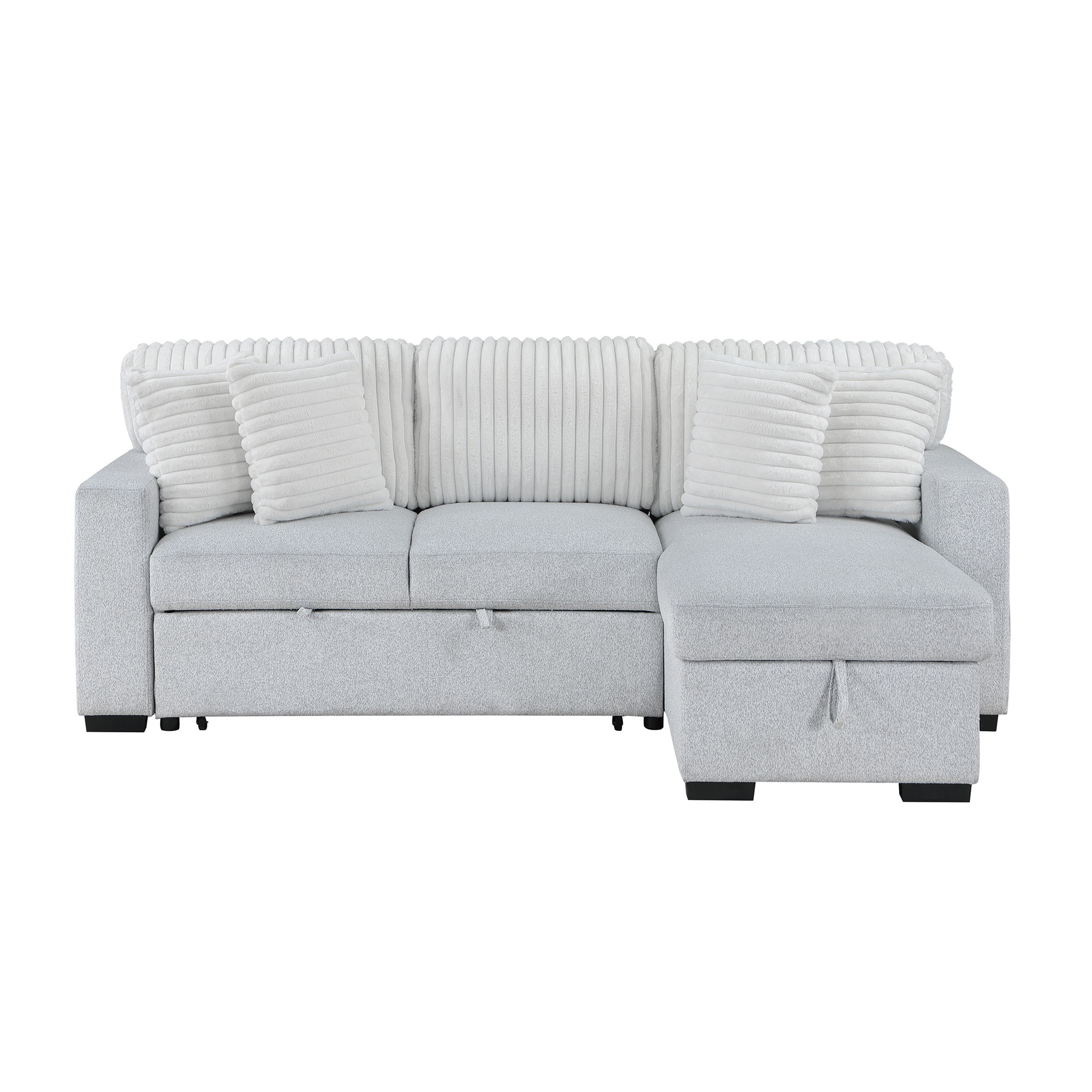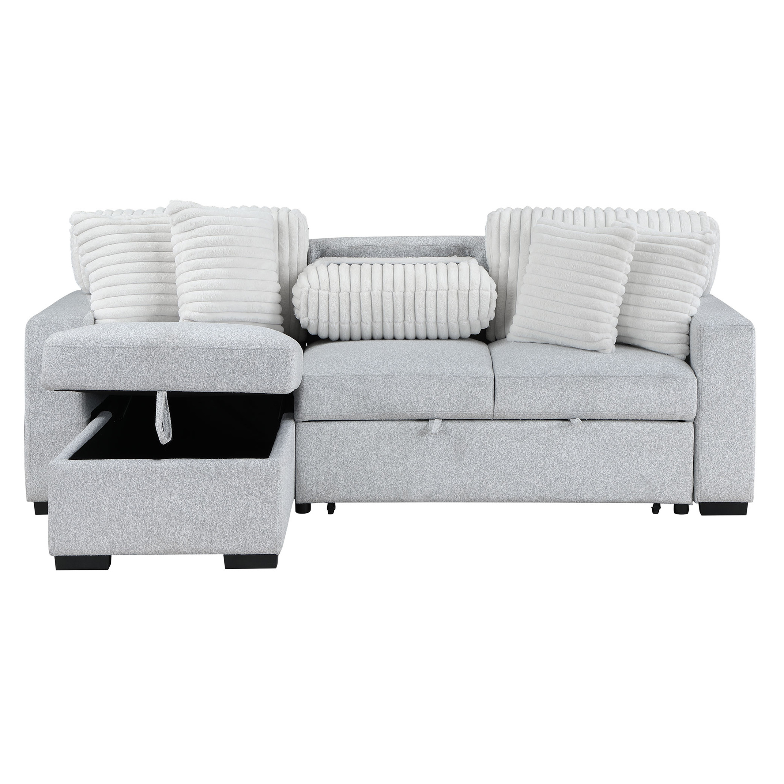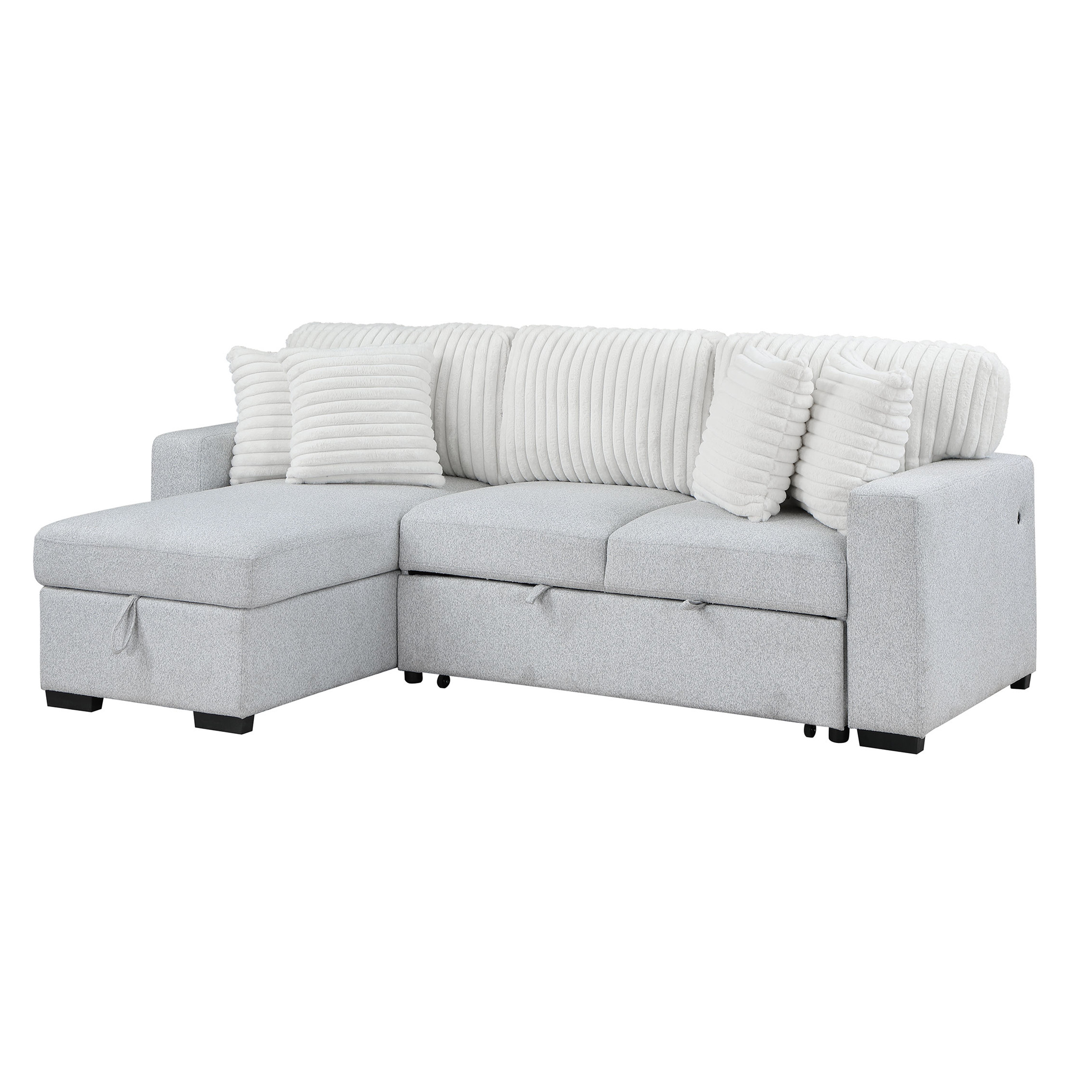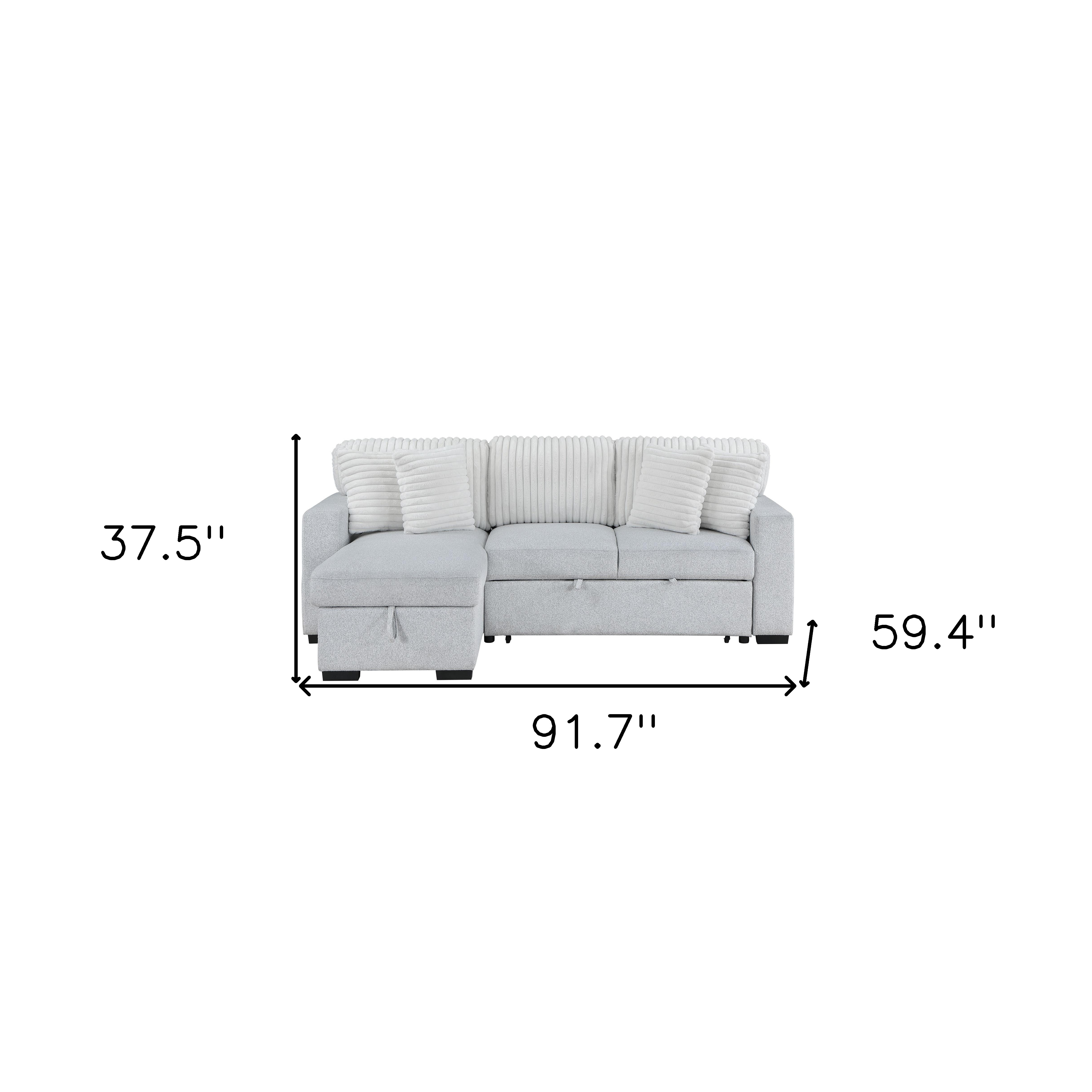 Add an air of fashion to your space with this fabulous 92-inch gray and white fabric sleeper usb sleeper sofa with toss pillow. Solid colors give you lots of decorative options and are easy to work into your decor scheme. Sinuous springs construction gives this piece strong support and makes it comfortable to sit even for long periods of time. Square arms offer a comfy place to rest. Black metal legs effortlessly elevate the room and add a touch of contemporary design. A great showpiece for your room, this sofa is a must have. 37.50-inch h x 91.70-inch w x 59.40-inch d.