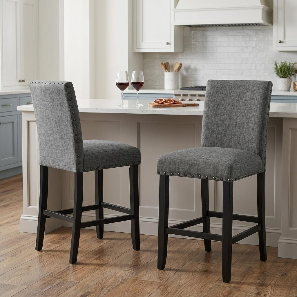 fabric counter height bar chairs, counter height bar chairs, height bar chairs, set 26" gray black wood, gray black wood fabric counter |