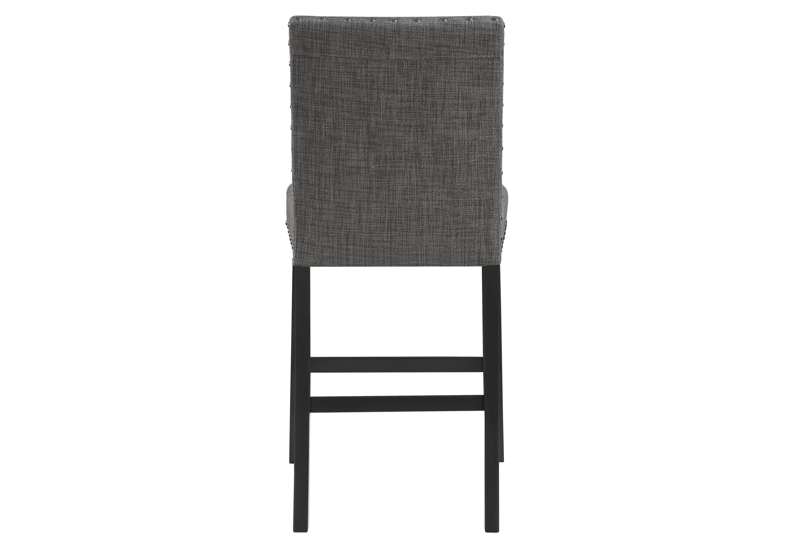 Comfortable enough to sit in for awhile, this set of two 26-inch gray and black wood and fabric counter height bar chairs will transcend the look of your room. The black coloration of the high quality solid and manufactured wood base marries nicely with the gray upholstered seat. Designed with a footrest for comfort and convenience. The square shape of the seat combines with a full back to give this chair a comfortable and fashionable look. 40.24-inch h x 21.22-inch w x 18.03-inch d.