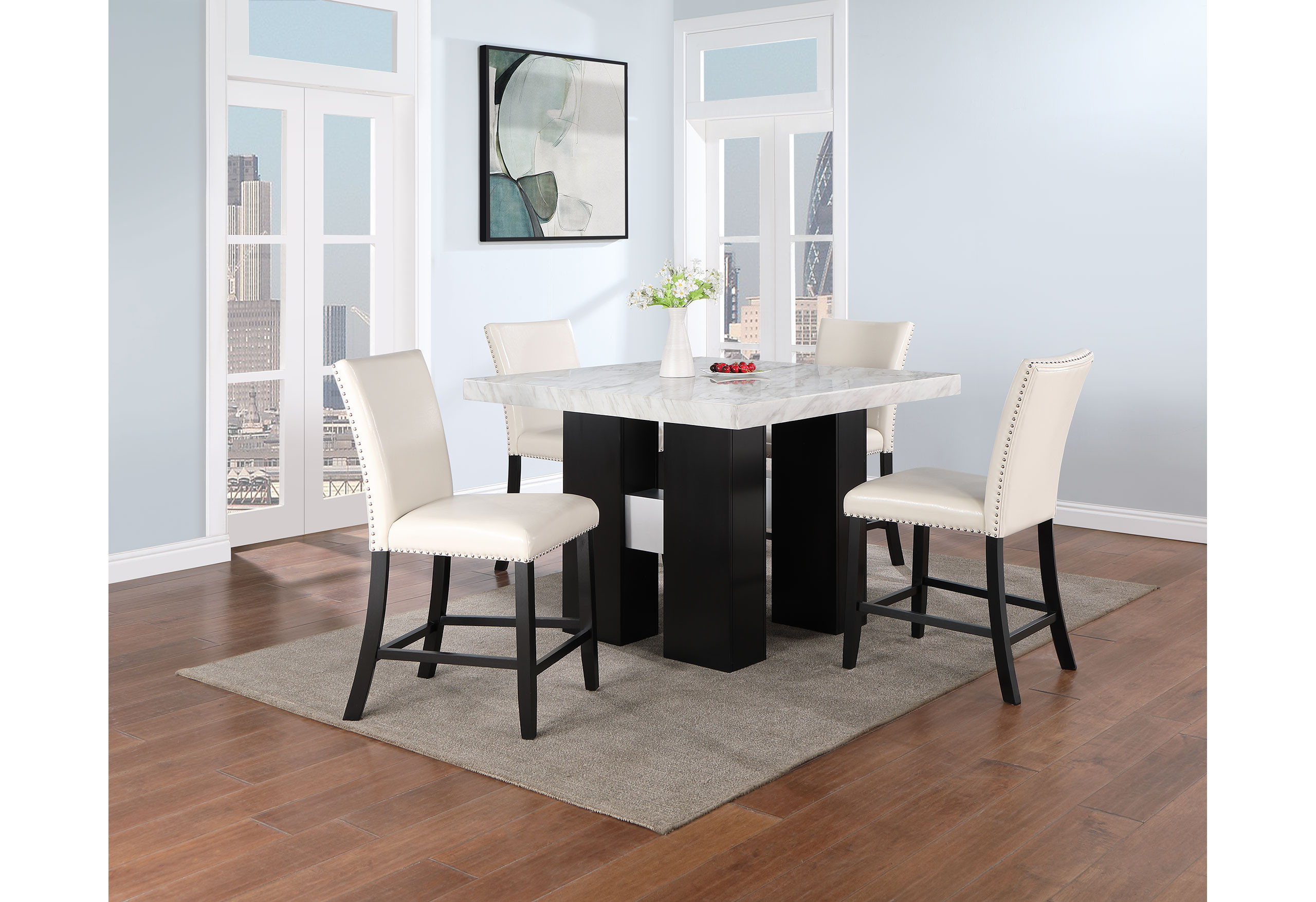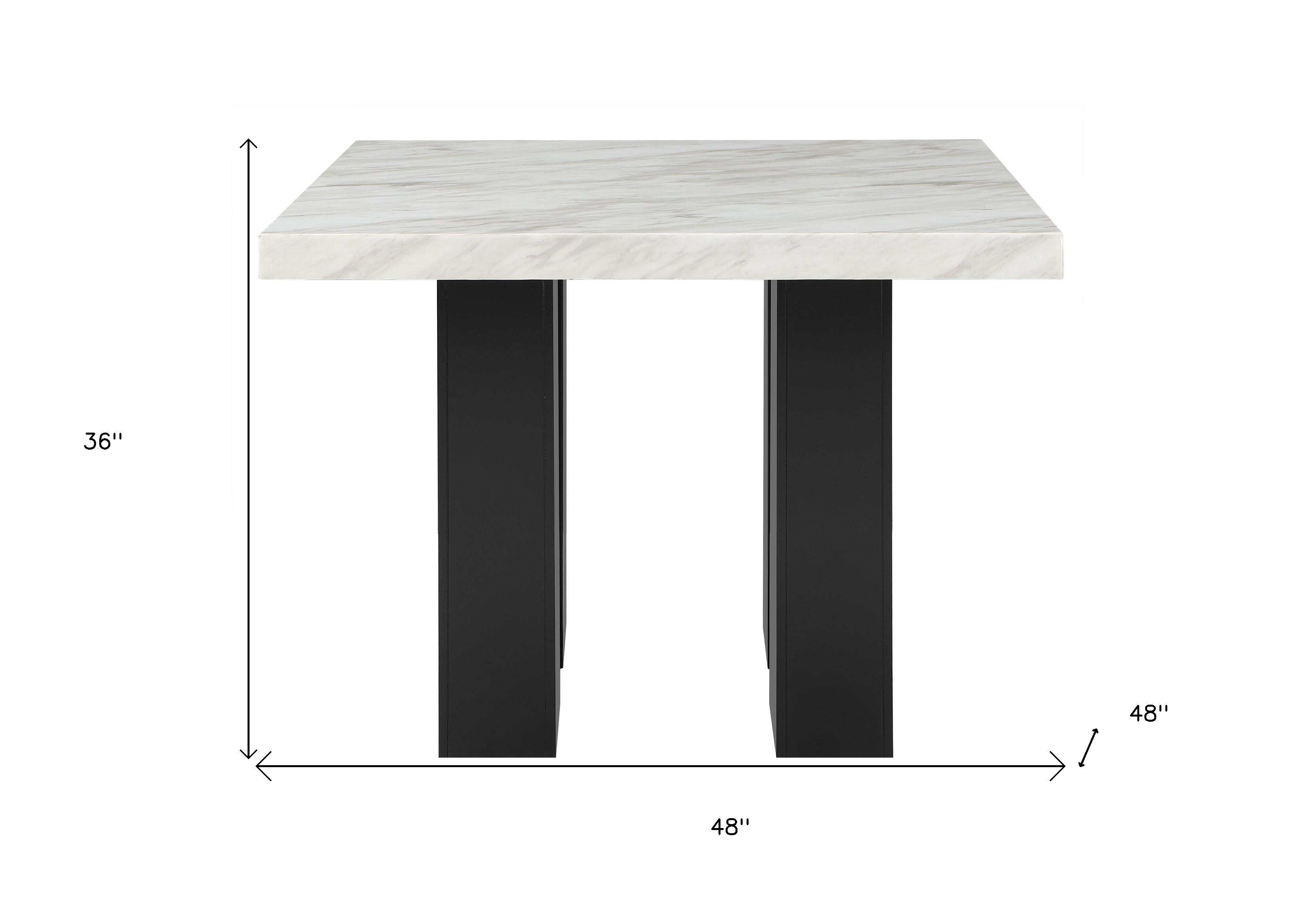 Elevate your bar and restaurant with this sleek 48-inch white square bar table crafted from solid and manufactured wood with a glossy finish. The transitional style exudes elegance, while the fixed table mechanism and four-leg base ensure stability. The top and base colors in pristine white add a touch of sophistication to any space. Perfect for intimate gatherings or casual dining, this table's clean lines and minimalist design make it a versatile addition to any establishment. Whether serving cocktails or hosting a cozy dinner, this bar table offers both style and functionality for your commercial or residential space. 36-inch h x 48-inch w x 48-inch d.