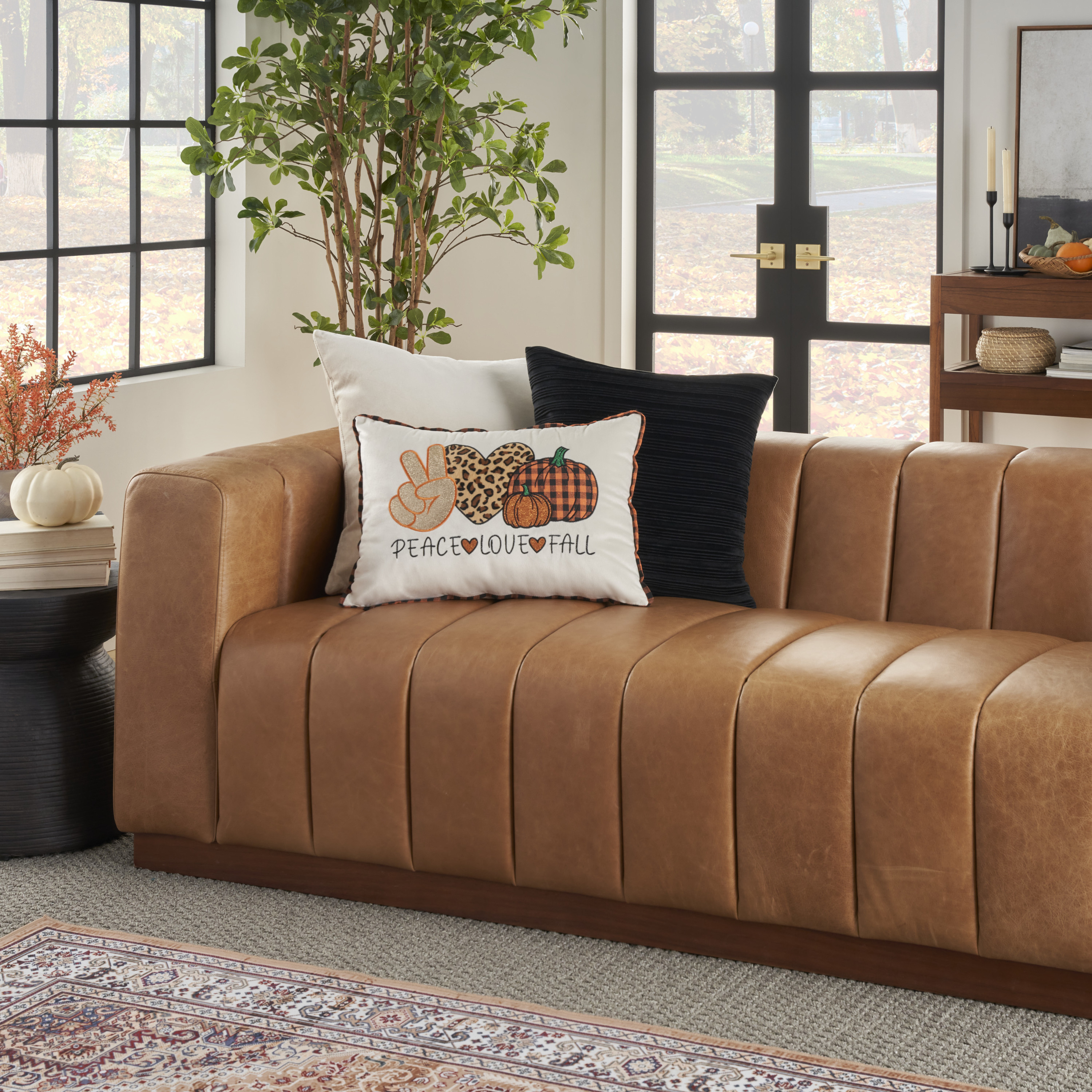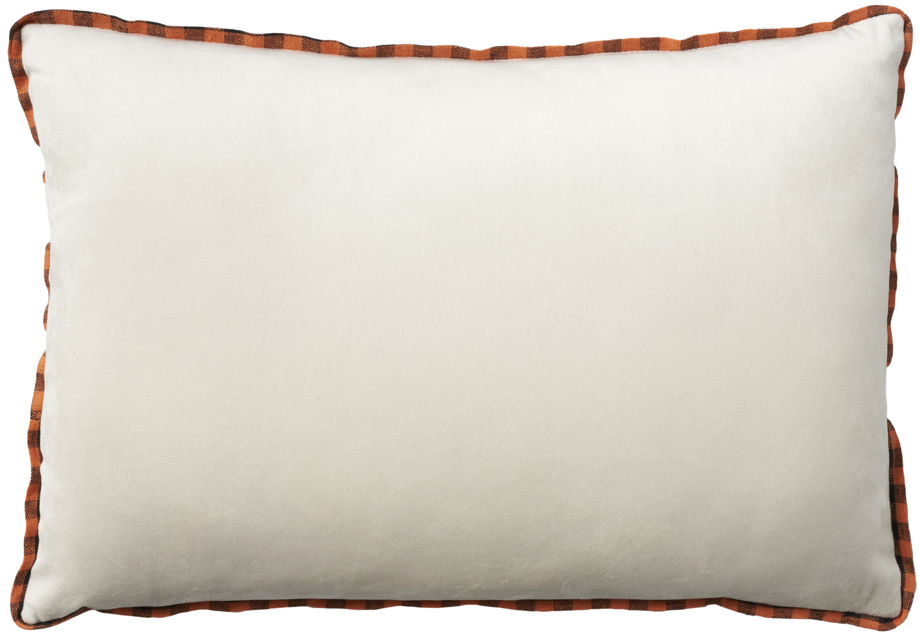 Add an air of fashion to your room and rejuvenate the space with this cute and fashionable 20-inch x 14-inch orange text velvet throw pillow. Set a festive fall mood with this cozy and fun 20-inch x 14-inch orange text velvet throw pillow. This orange hued piece represents quality construction, expertly made from premium velvet that is not only long lasting but super soft to the touch as well. Super soft and built to hold its shape, this polyester-filled pillow is a great option. For anyone that loves to decorate or accent their space with color and texture. A great decorative accessory to add color and dimension to your favorite chair, accent your sofa, or to use as part of your bed ensemble. 20-inch h x 14-inch w x 5-inch d.