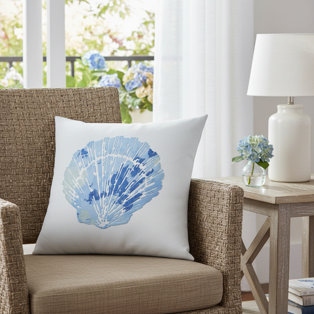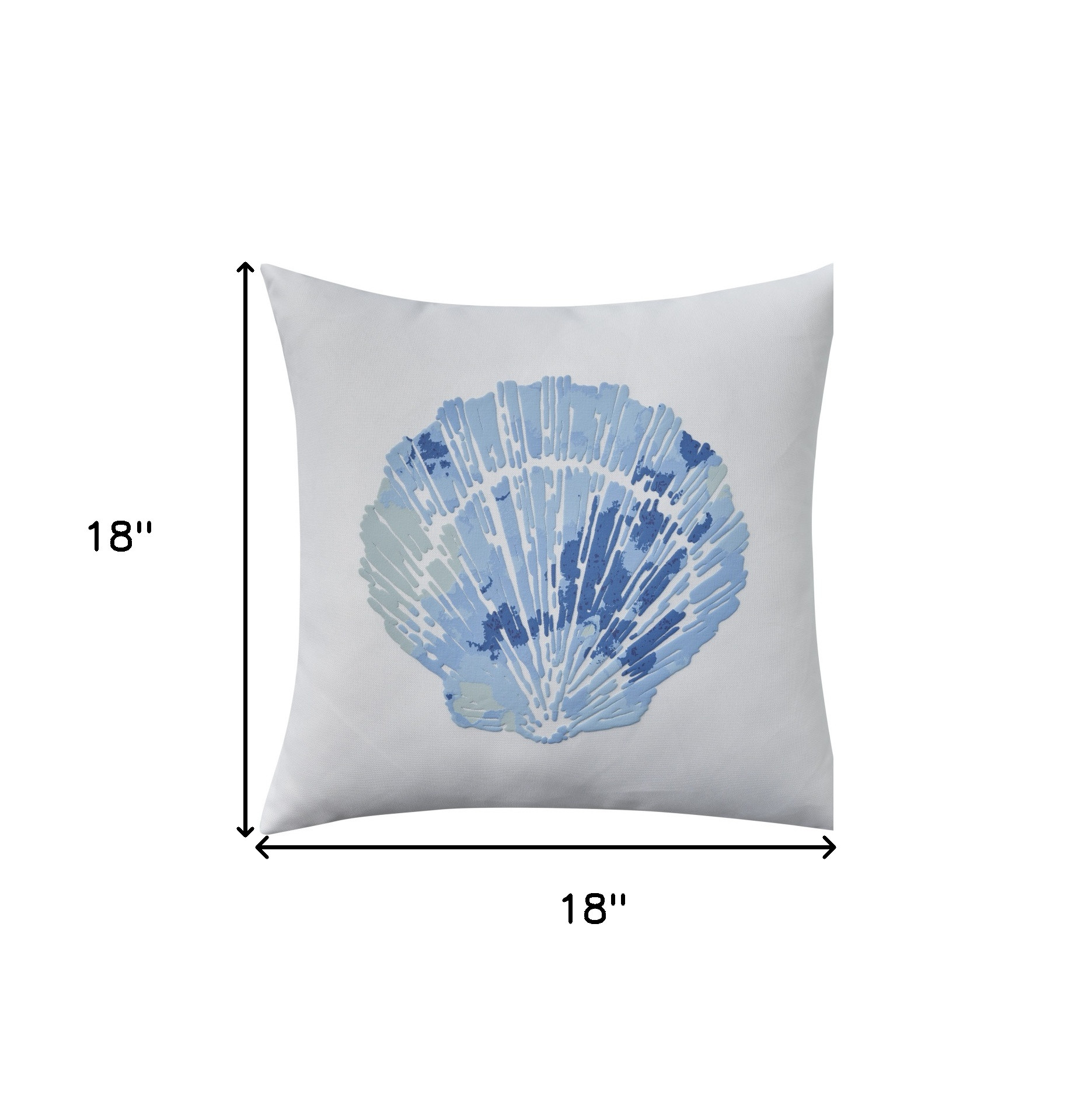 Bring a bit of fashion and zip to your space with this eye-catching and comfy 18-inch blue and white coastal seashell throw pillow. The blue and white coloring of the extremely durable and long lasting polyester will add dimension and texture to your space. Super soft and built to hold its shape, this polyester-filled pillow is a great option. Great to use on its own or mix with other decorations for the perfect look. A great decorative accessory to add color and dimension to your favorite chair, accent your sofa, or to use as part of your bed ensemble. 18.00-inch h x 18.00-inch w x 5.00-inch d.