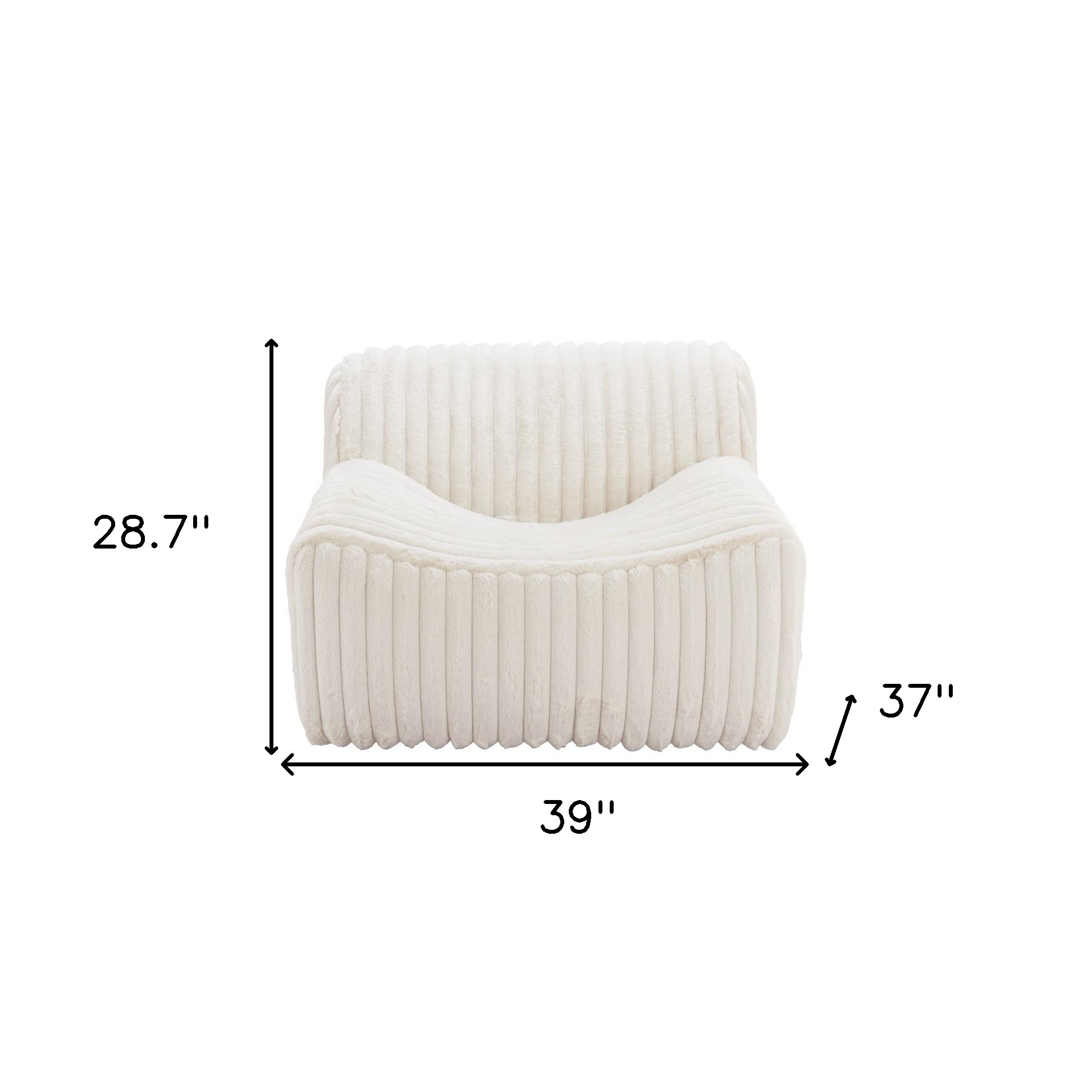 This 39-inch cream faux fur and upholstered tufted lounge chair is the perfect decorative yet functional accessory for your home. This sturdy faux fur and 100% polyester upholstered lounge chair comes in a chic solid cream color to give your space just the right look. The high quality solid and manufactured wood inner frame flaunts a fixed back that is complimented by soft and comfortable cushioning. The tufted cushions add fine designer detailing. 28.7-inch h x 39-inch w x 37-inch d.