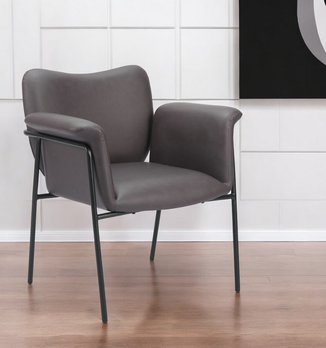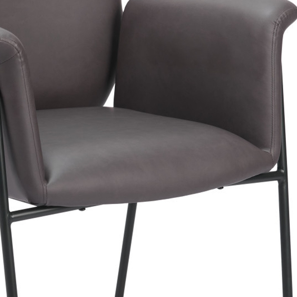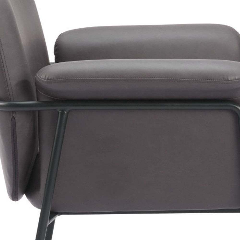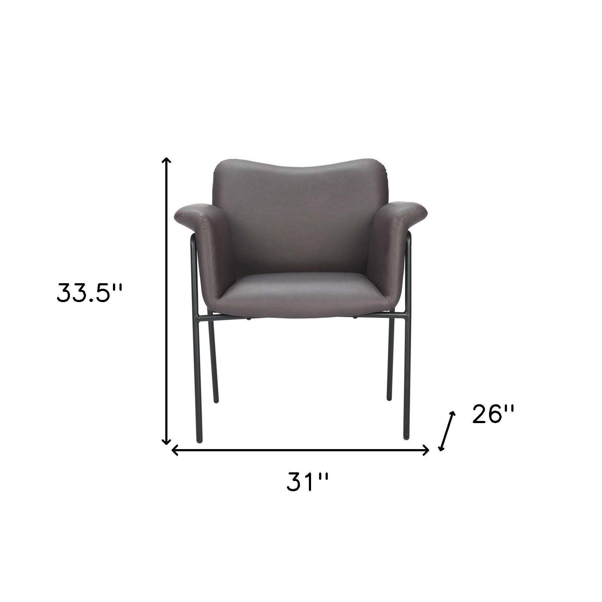 Unique and decorative, this 31-inch brown and black faux leather and faux leather arm chair will leave a lasting impression. This sturdy faux leather and polyurethane upholstered arm chair comes in a chic solid brown color to give your space just the right look. Giving the chair stability and structure, the inner frame is constructed with high quality manufactured wood, includes comfy armrests, and features a fixed back that comes complete with soft and comfortable cushioning. 33.5-inch h x 31-inch w x 26-inch d.