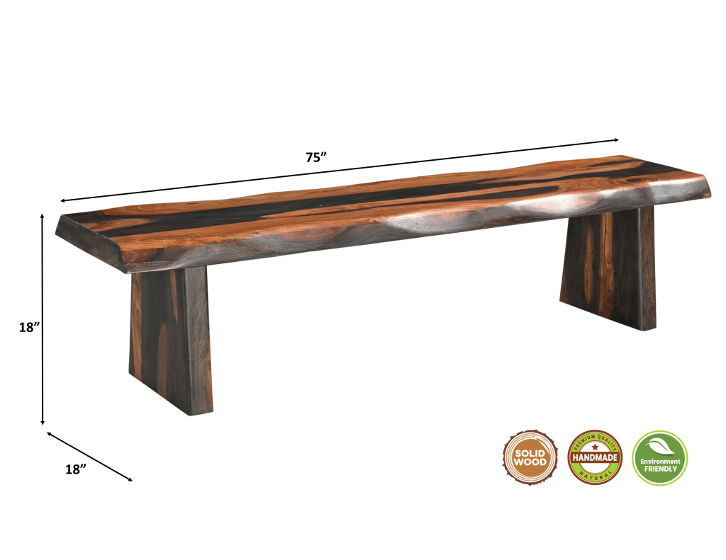 Optimize your space and add some charm to your room with the 75-inch brown solid wood dining bench. Made of high quality solid wood, the all over brown coloration gives this piece an updated and refreshing look. Add this bench to your kitchen or dining room for convenient seating at the table. Benches don't have to be unsightly. Increase your seating and the fashion quotient of your room all at the same time with this hard wearing, versatile, and good looking bench. 18-inch h x 75-inch w x 18-inch d.