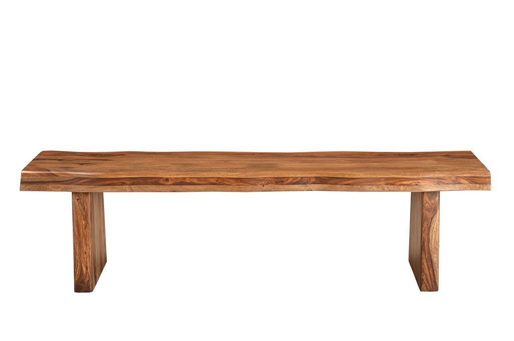 Optimize your space and add some charm to your room with the 68-inch brown solid wood live edge dining bench. This bench features quality construction from solid wood in an updated monotone color scheme with brown as the main color throughout. Add this bench to your kitchen or dining room for convenient seating at the table. Benches don't have to be unsightly. Increase your seating and the fashion quotient of your room all at the same time with this hard wearing, versatile, and good looking bench. 18-inch h x 68-inch w x 18-inch d.
