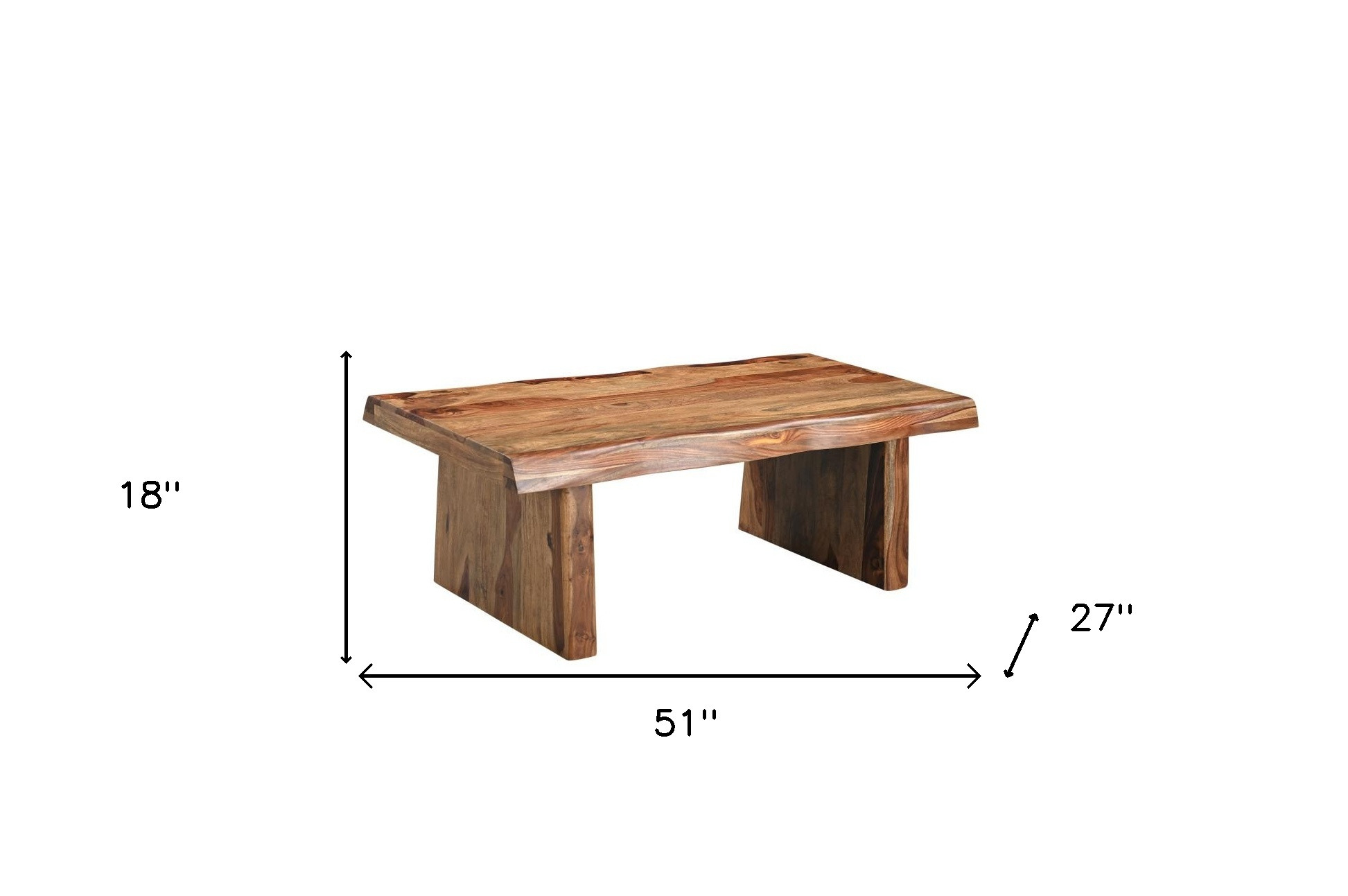 Give your living room, family room, or office the perfect anchor piece with this 51-inch brown solid wood live edge coffee table. Create an inspiring atmosphere in most any room with this natural multi-tonal brown solid wood table. This classic rectangular table features a gorgeous artisanal live edge that will be a great accent for living area, bedroom, or office. 18-inch h x 51-inch w x 27-inch d.