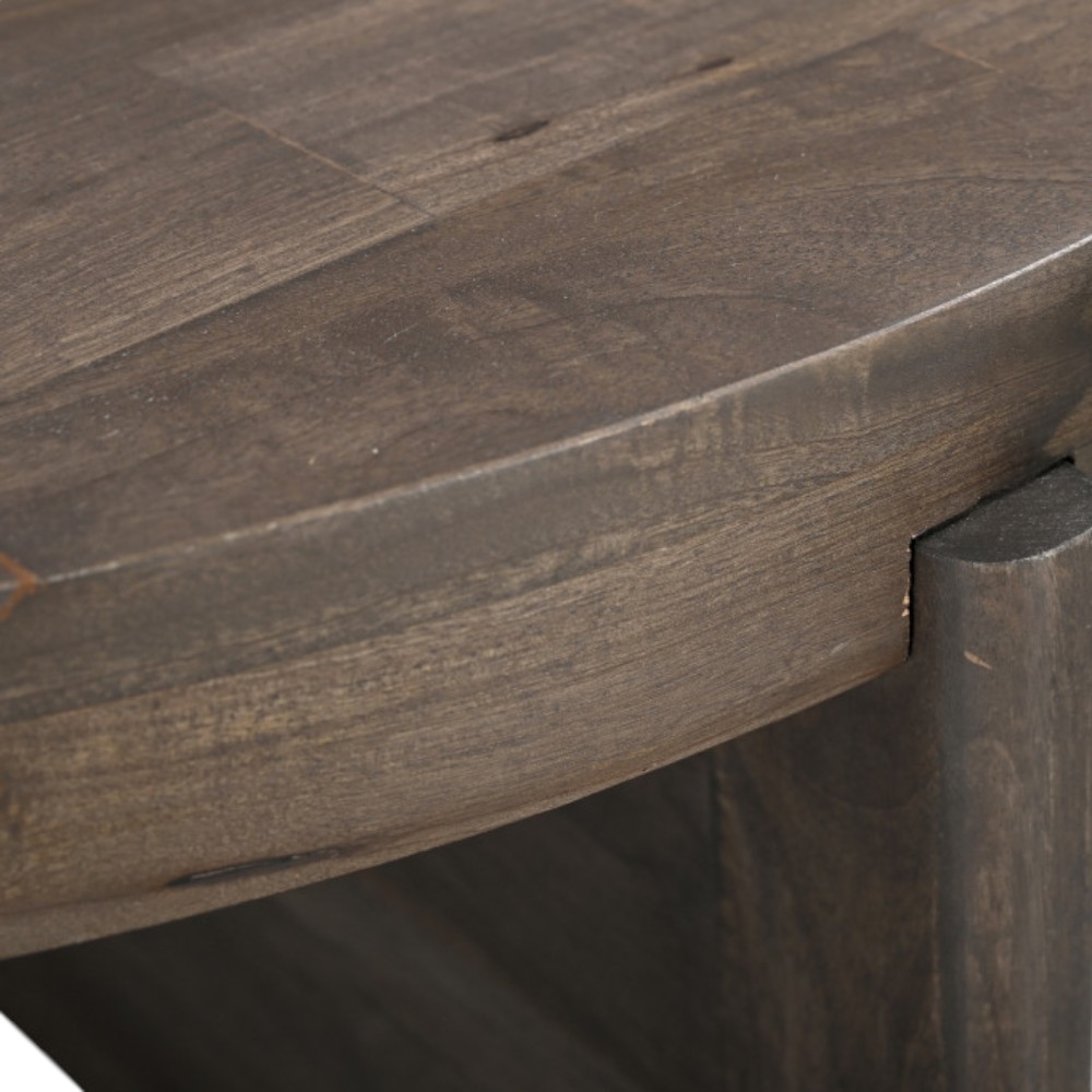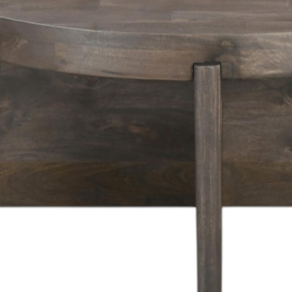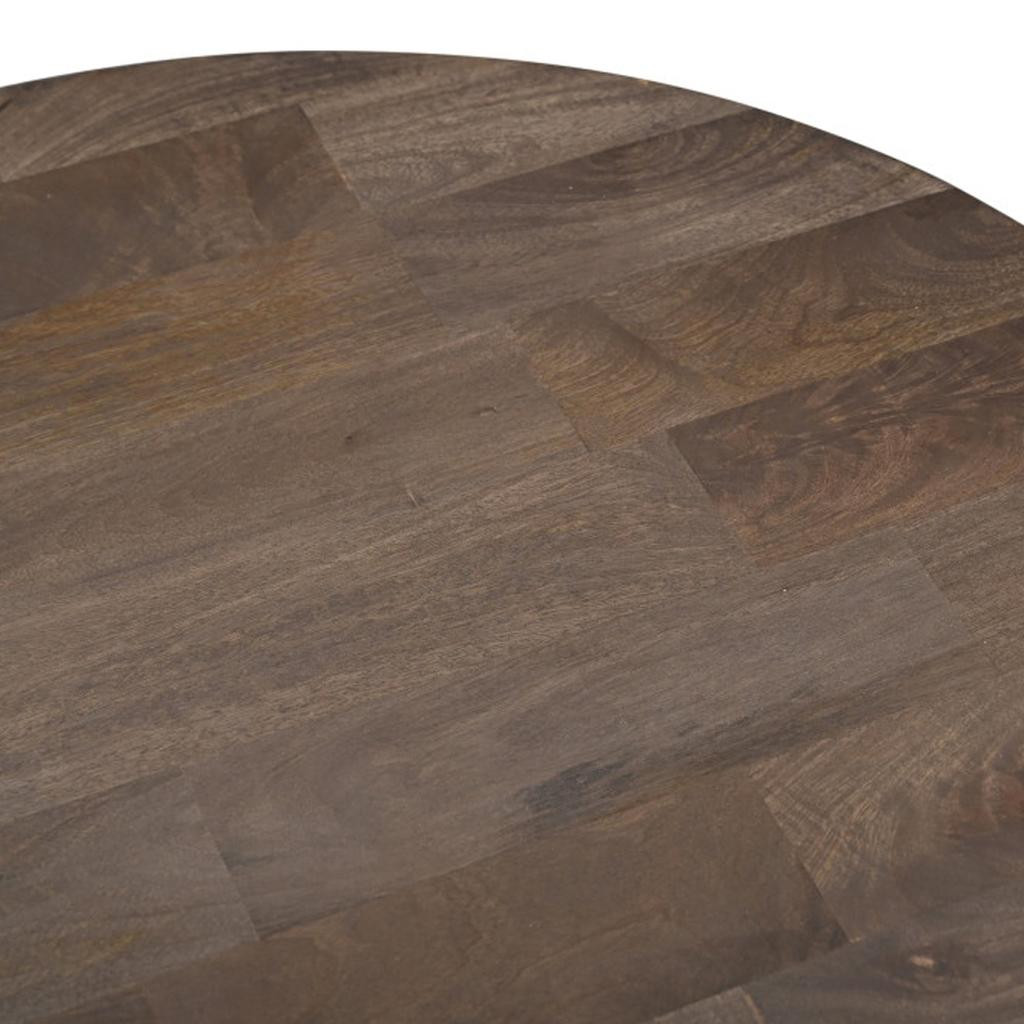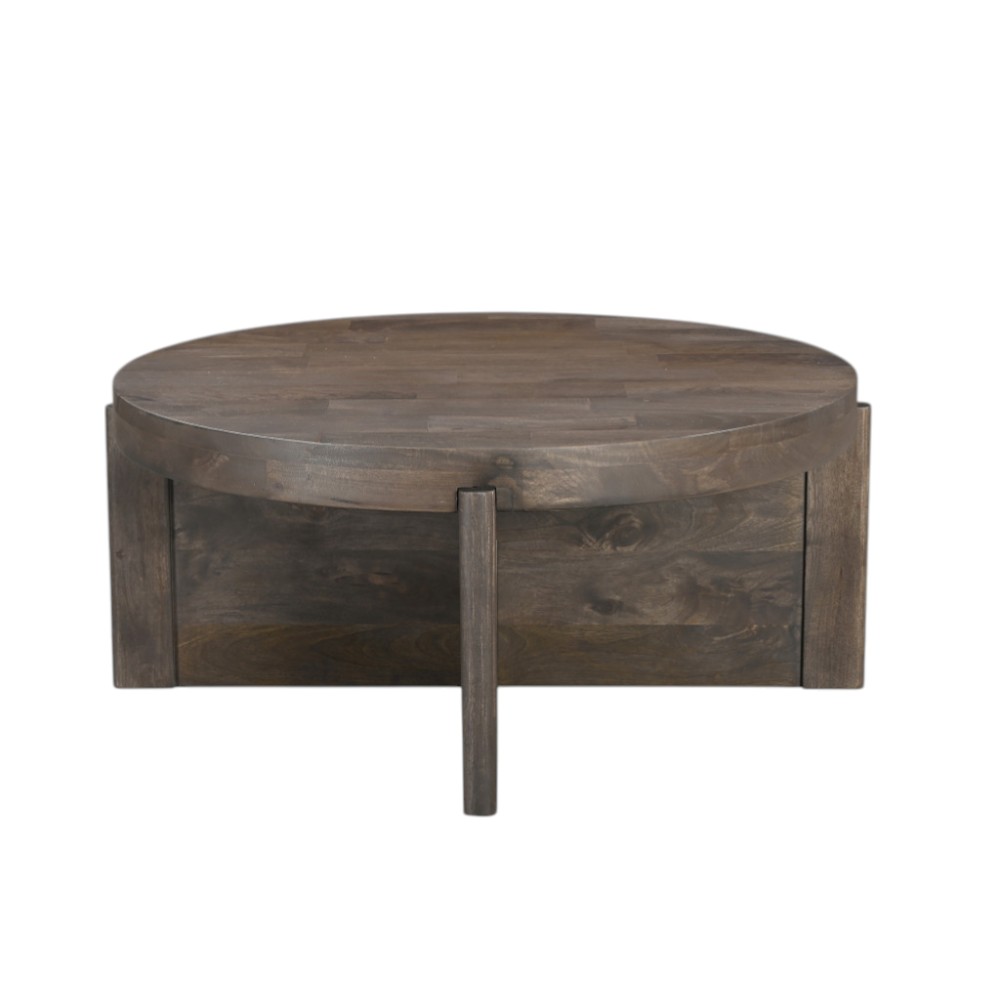 This stylish 36-inch brown solid wood round cross legs coffee table is sure to inspire compliments no matter where it sits. This table features quality construction from solid wood and an updated monotone color scheme with brown as the main color on both the top and the base. This round table utilizes its unique shape to give your room a modern geometric accent. If you're looking for something that can fit into a living area, bedroom, or office, this coffee table is for you. 16-inch h x 36-inch w x 36-inch d.