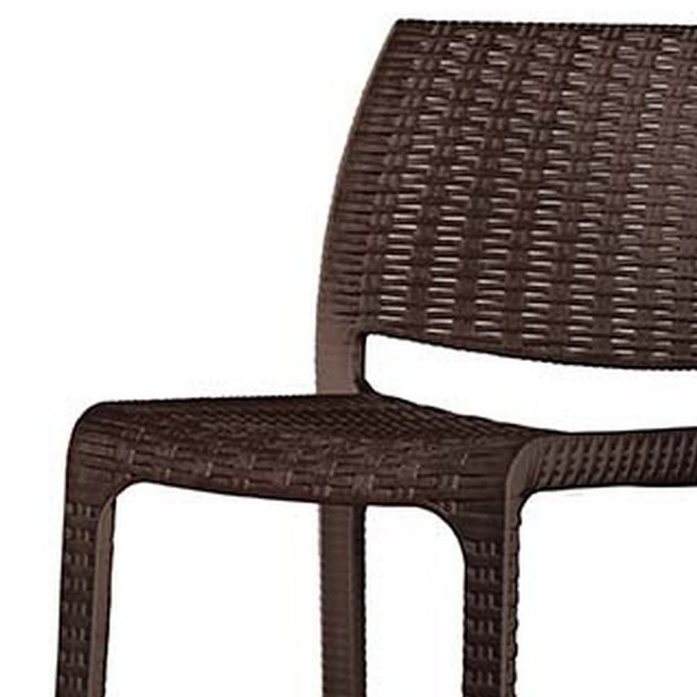 This set of two 30-inch brown faux rattan low back outdoor bar height chairs will be the perfect way to add some cool design and utility to your space similar to what you find in your favorite outdoor cafes or bars. Allow the mesmerizing brown color to become a work of art, leaving a lasting impression that beautifully embodies your individuality. The square shape of the seat combines with a low back to give this chair a comfortable and fashionable look. For outdoor gatherings on the deck, yard, patio or poolside, this bar stool is a comfy and trendy option. 40.20-inch h x 19.90-inch w x 20.00-inch d.