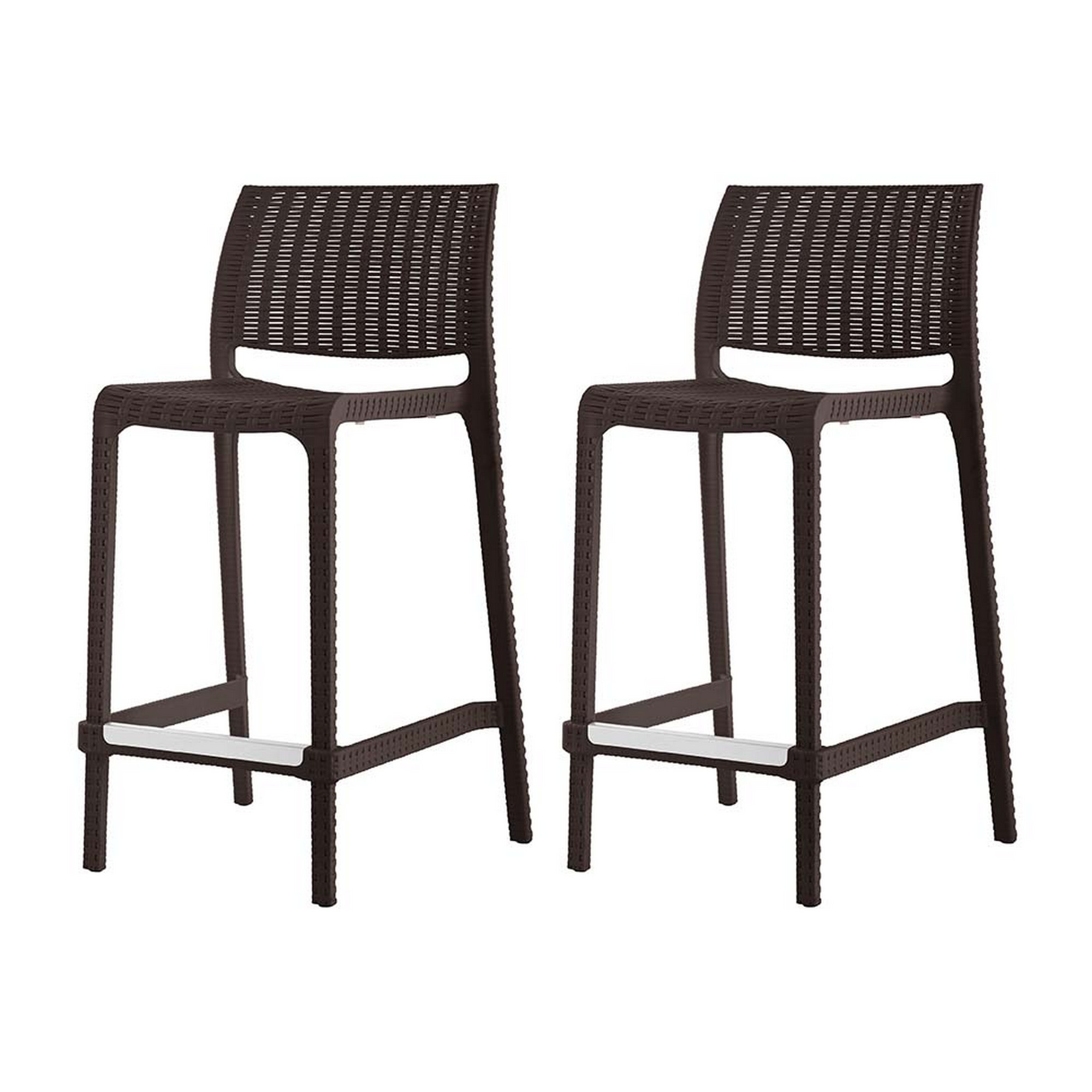 Bring a trendy bar vibe to your space, with this set of two 26-inch brown faux rattan low back outdoor counter height bar chairs. Allow the mesmerizing brown color to become a work of art, leaving a lasting impression that beautifully embodies your individuality. Not only good looking and stylish, this chair also features a square shaped seat and a low back for the ultimate in comfort and enjoyment. For outdoor gatherings on the deck, yard, patio or poolside, this bar stool is a comfy and trendy option. 36.20-inch h x 19.70-inch w x 19.90-inch d.
