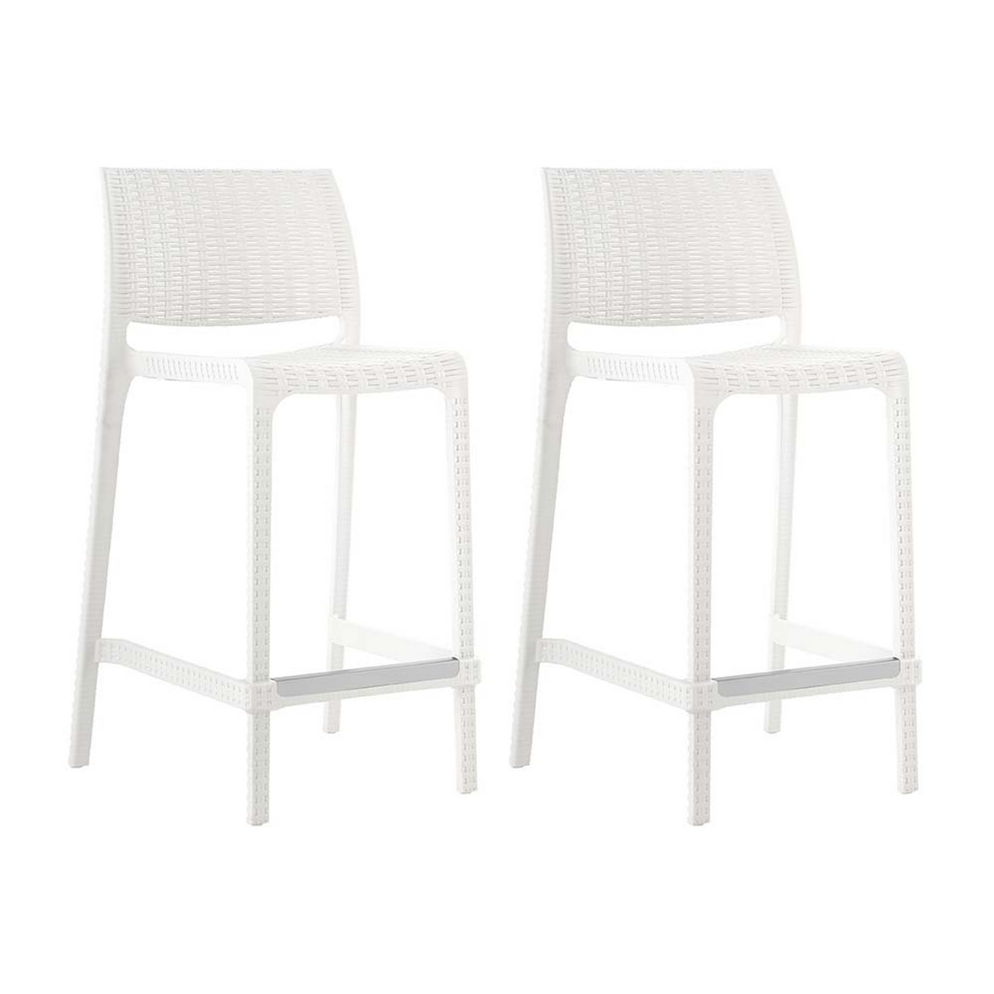 This set of two 26-inch white faux rattan low back outdoor counter height bar chairs will be the perfect way to add some cool design and utility to your space similar to what you find in your favorite outdoor cafes or bars. Let the captivating white color serve as an artistic expression, leaving a lasting impression that embodies your individuality. A low back mixed with a square shaped seat design makes this chair both comfortable and fashionable. For outdoor gatherings on the deck, yard, patio or poolside, this bar stool is a comfy and trendy option. 36.20-inch h x 19.70-inch w x 19.90-inch d.