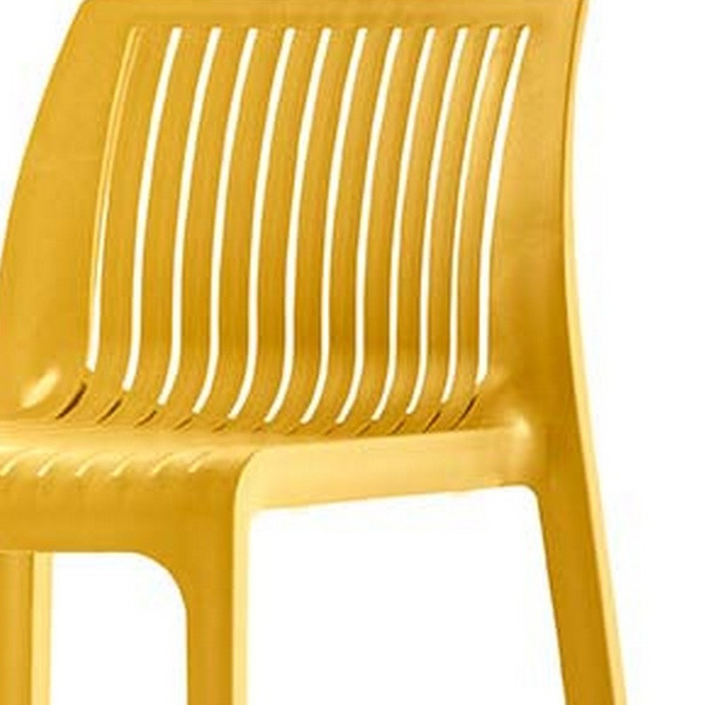 This set of two 30-inch yellow heavy duty plastic outdoor bar height chairs will be the perfect way to add some cool design and utility to your space similar to what you find in your favorite outdoor cafes or bars. Allow the enchanting yellow color to leave a memorable impression and highlight your one-of-a-kind persona. For outdoor gatherings on the deck, yard, patio or poolside, this bar stool is a comfy and trendy option. 40.20-inch h x 19.90-inch w x 20.00-inch d.