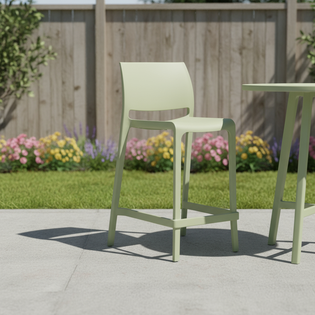 Comfort and design come together nicely in this set of two 26-inch green heavy duty plastic low back outdoor counter height bar chairs. Allow the enchanting green color to leave a memorable impression and highlight your one-of-a-kind persona. Not only good looking and stylish, this chair also features a square shaped seat and a low back for the ultimate in comfort and enjoyment. For outdoor gatherings on the deck, yard, patio or poolside, this bar stool is a comfy and trendy option. 37.00-inch h x 19.00-inch w x 20.00-inch d.