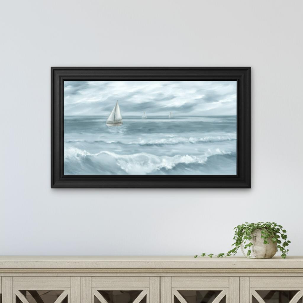Add an air of fashion to your room and rejuvenate the space with this set of two steadfast in the waves black framed wall art. This acrylic painting is a way to express your artistic style and add some fashion to your walls. Reproduced for you on paper, this hanging decorative accent will be a trendy and fashionable way to dress your walls. Adding this hanging wall art to your space to make your room feel more finished and attractive. Utilize this opportunity to create a focal point in the room with this fabulous wall decor option. 15-inch h x 19-inch w x 1-inch d.