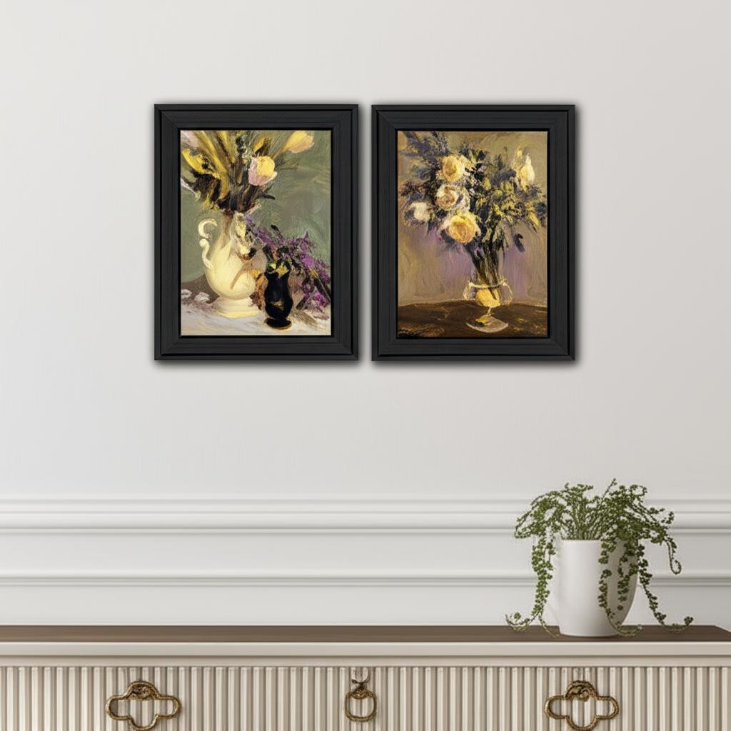 Unique and decorative, this set of two abstract tulips and lavender flower vases black framed wall art will leave a lasting impression. This acrylic painting is a way to express your artistic style and add some fashion to your walls. Reproduced for you on paper, this hanging decorative accent will be a trendy and fashionable way to dress your walls. Adding this hanging wall art to your space to make your room feel more finished and attractive. Instantly liven up your space with this art that brings color and dimension to your walls. 19-inch h x 15-inch w x 1-inch d.