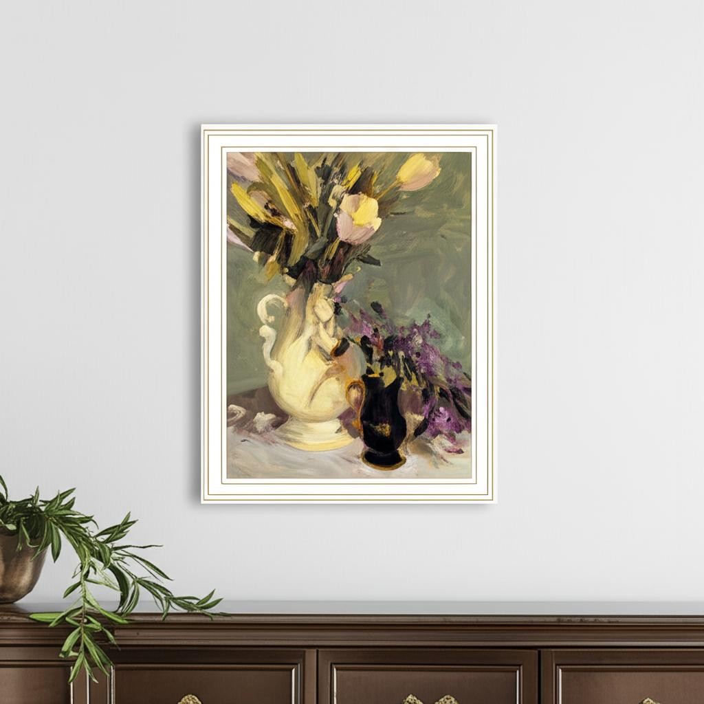 abstract tulips lavender flower vases, tulips lavender flower vases white, lavender flower vases white framed, tulips lavender flower vases, vases white framed wall art |