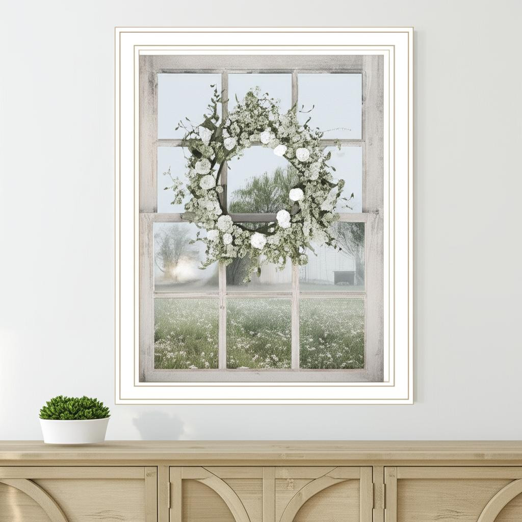 morning white framed wall art, white framed wall art, country morning white framed wall, framed wall art, green country morning white framed |