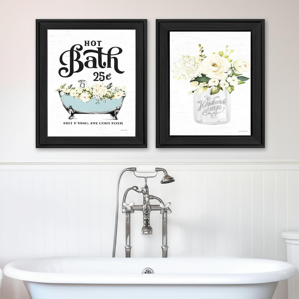 Bring some sizzle to your space with this eye-catching set of two hot bath and homemade soap black framed bathroom wall art. This acrylic painting is a way to express your artistic style and add some fashion to your walls. Reproduced for you on paper, this hanging decorative accent will be a trendy and fashionable way to dress your walls. Hang on your wall to add some up to date fashion and decoration. Instantly liven up your space with this art that brings color and dimension to your walls. 19-inch h x 15-inch w x 1-inch d.
