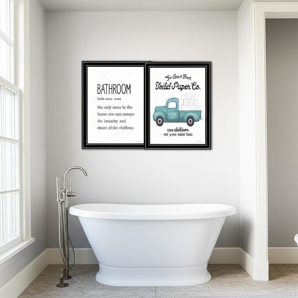 This set of two the royal flush toilet paper co. . Black framed bathroom wall art will add a beautiful decorative accent to your decor. This acrylic painting is a way to express your artistic style and add some fashion to your walls. Reproduced for you on paper, this hanging decorative accent will be a trendy and fashionable way to dress your walls. Adding this hanging wall art to your space to make your room feel more finished and attractive. Utilize this opportunity to create a focal point in the room with this fabulous wall decor option. 18-inch h x 14-inch w x 1-inch d.