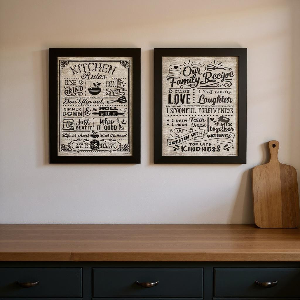 rules recipes black framed kitchen, black framed kitchen wall art, kitchen wall art, recipes black framed kitchen wall, set family kitchen |