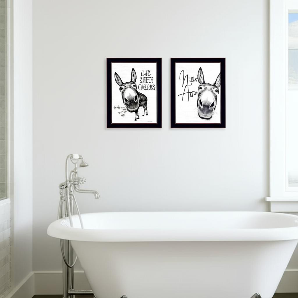 Bring some sizzle to your space with this eye-catching set of two hello sweet cheeks. Black framed bathroom wall art. This acrylic painting is a way to express your artistic style and add some fashion to your walls. Reproduced for you on paper, this hanging decorative accent will be a trendy and fashionable way to dress your walls. Adding this hanging wall art to your space to make your room feel more finished and attractive. Utilize this opportunity to create a focal point in the room with this fabulous wall decor option. 18-inch h x 14-inch w x 1-inch d.