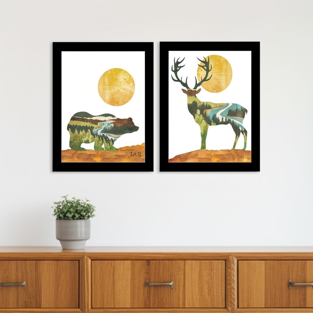 deer black framed wall art, bear deer black framed wall, set bear deer black framed, bear deer black framed, black framed wall art |