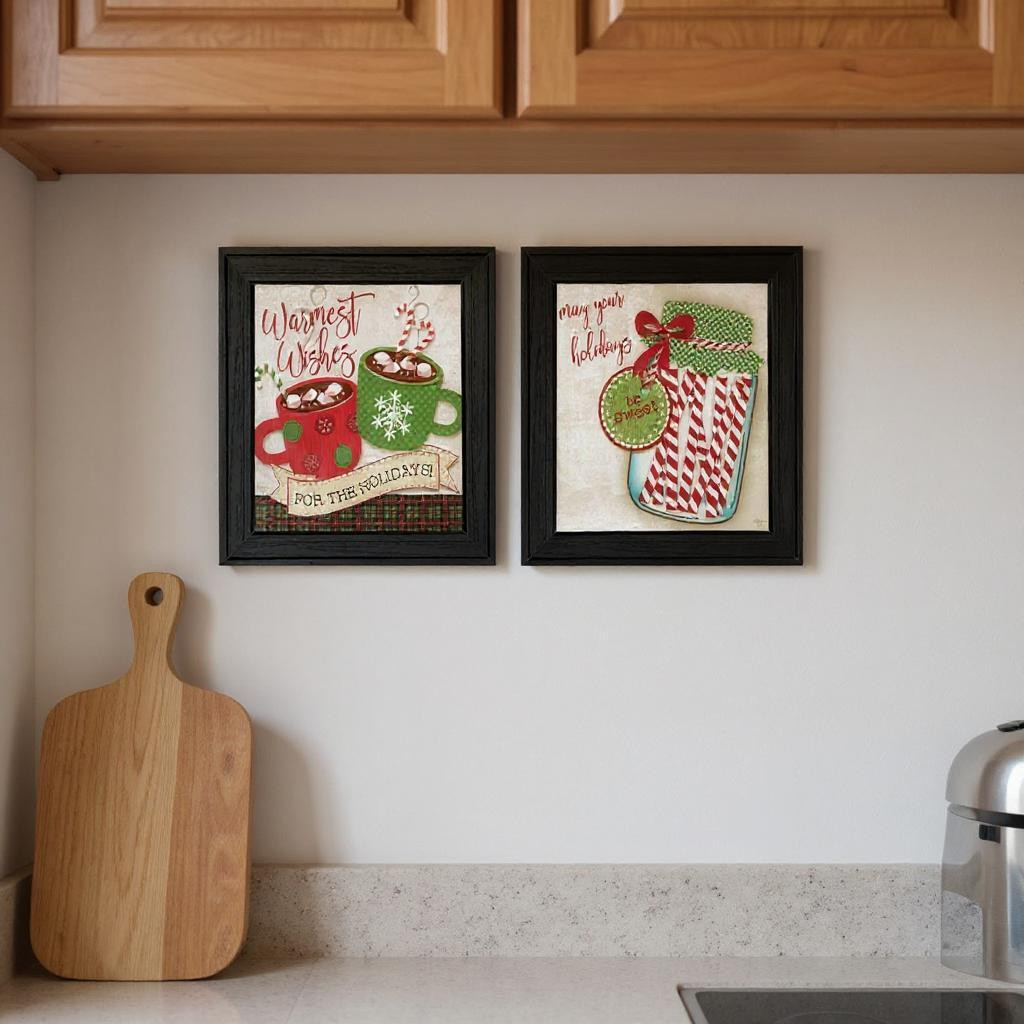 This set of two hot cocoa and candy canes black framed kitchen wall art will add a beautiful decorative accent to your decor. This acrylic painting is a way to express your artistic style and add some fashion to your walls. Reproduced for you on paper, this hanging decorative accent will be a trendy and fashionable way to dress your walls. Adding this hanging wall art to your space to make your room feel more finished and attractive. Utilize this opportunity to create a focal point in the room with this fabulous wall decor option. 15-inch h x 15-inch w x 1-inch d.