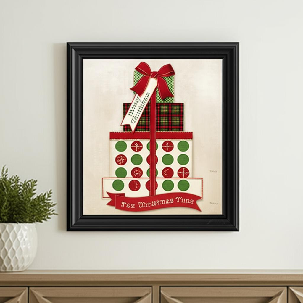 Add an air of fashion to your room and rejuvenate the space with this set of three it's christmas time. Black framed wall art. This acrylic painting is a way to express your artistic style and add some fashion to your walls. Reproduced for you on paper, this hanging decorative accent will be a trendy and fashionable way to dress your walls. Adding this hanging wall art to your space to make your room feel more finished and attractive. Utilize this opportunity to create a focal point in the room with this fabulous wall decor option. 15-inch h x 15-inch w x 1-inch d.