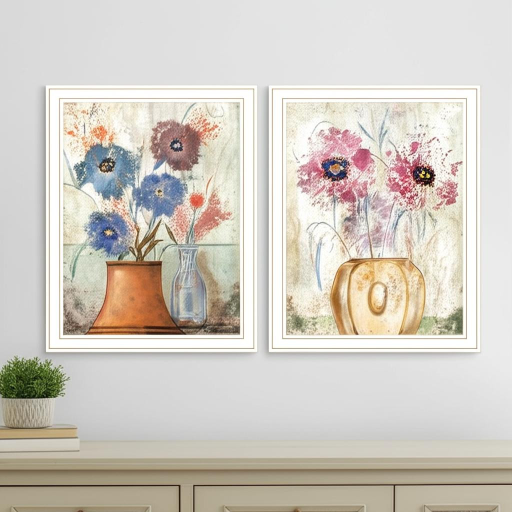 Unique and decorative, this set of two floral dreams white framed wall art will leave a lasting impression. This acrylic painting is a way to express your artistic style and add some fashion to your walls. Reproduced for you on paper, this hanging decorative accent will be a trendy and fashionable way to dress your walls. Hang on your wall to add some up to date fashion and decoration. Instantly liven up your space with this art that brings color and dimension to your walls. 18-inch h x 14-inch w x 1-inch d.
