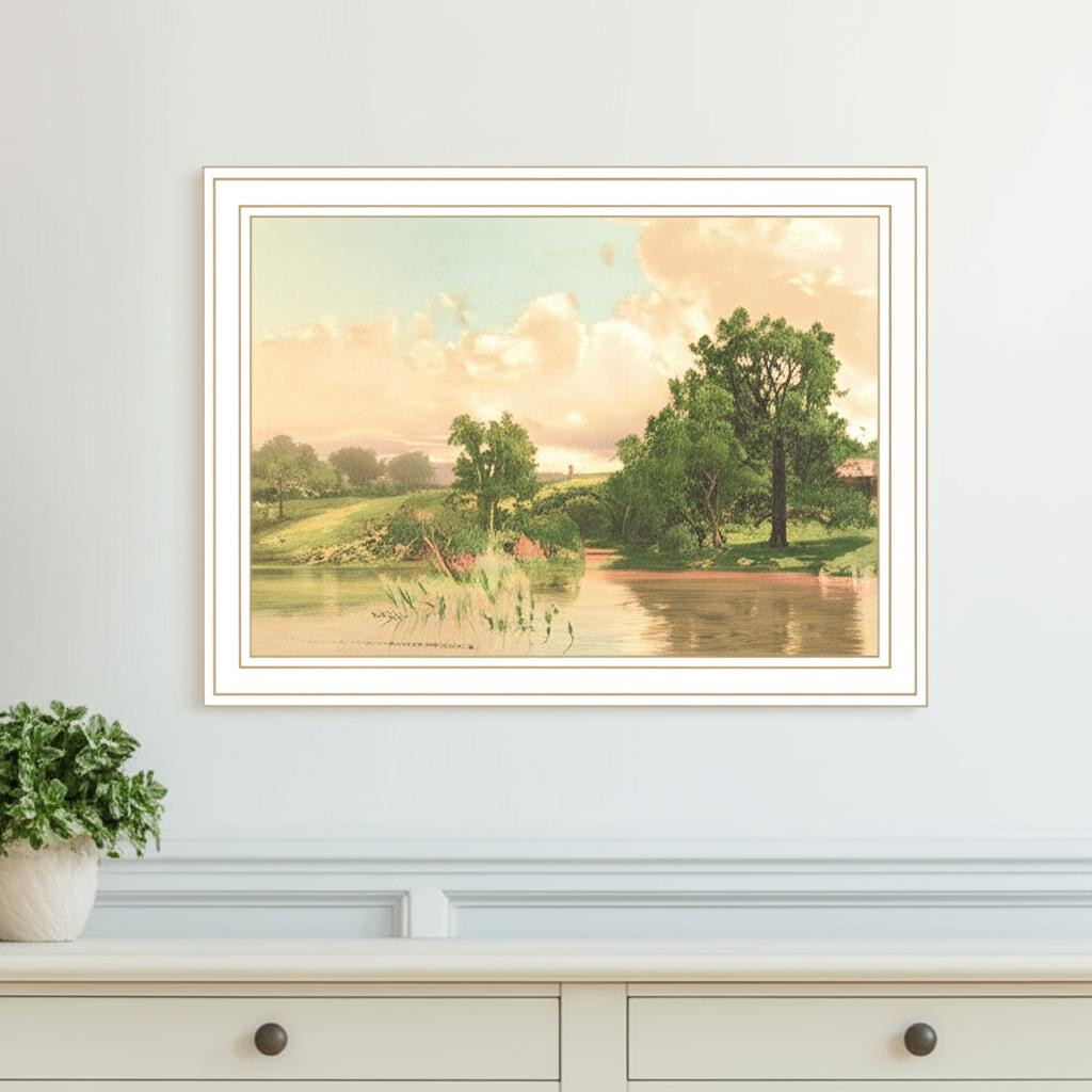 pond farmhouse white framed wall, country pond farmhouse white framed, pond farmhouse white framed, farmhouse white framed wall art, set country pond farmhouse white |