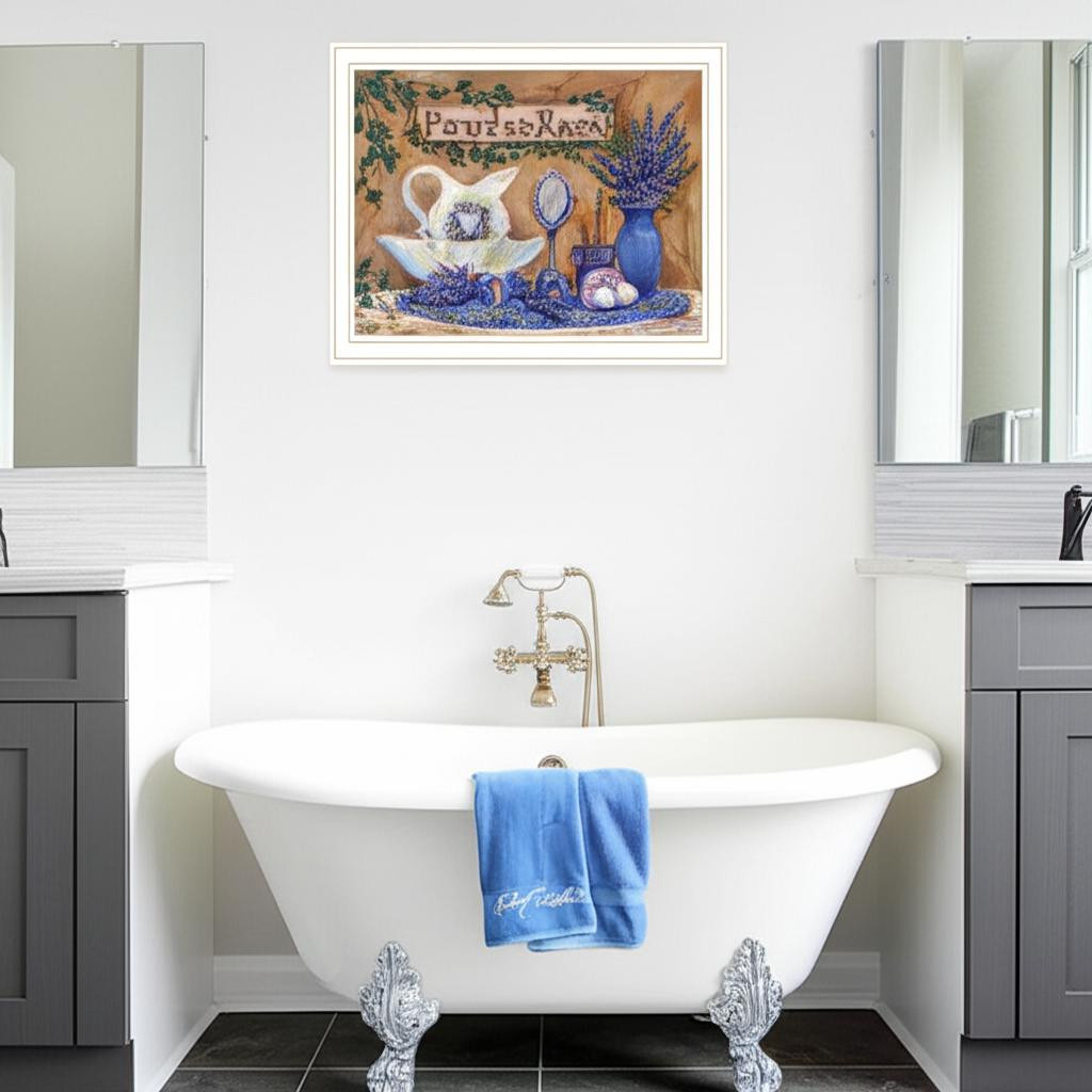 lavender bath white framed bathroom, white framed bathroom wall art, bathroom wall art, framed bathroom wall art, lavender bath white framed |