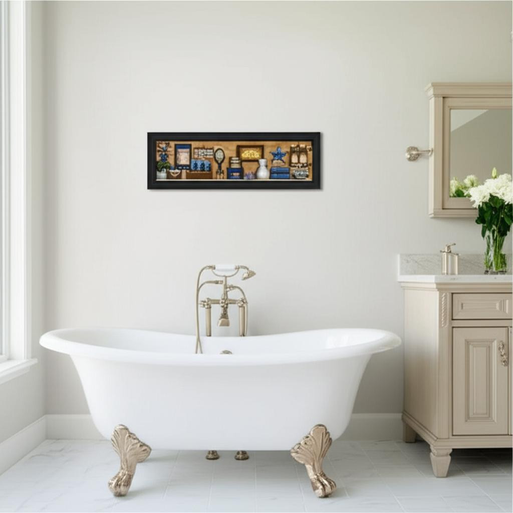 Add an air of fashion to your room and rejuvenate the space with this set of three rest and relax with a lavender bath black framed bathroom wall art. This acrylic painting is a way to express your artistic style and add some fashion to your walls. Reproduced for you on paper, this hanging decorative accent will be a trendy and fashionable way to dress your walls. Hang on your wall to add some up to date fashion and decoration. Instantly liven up your space with this art that brings color and dimension to your walls. 8.5-inch h x 12.25-inch w x 1-inch d.