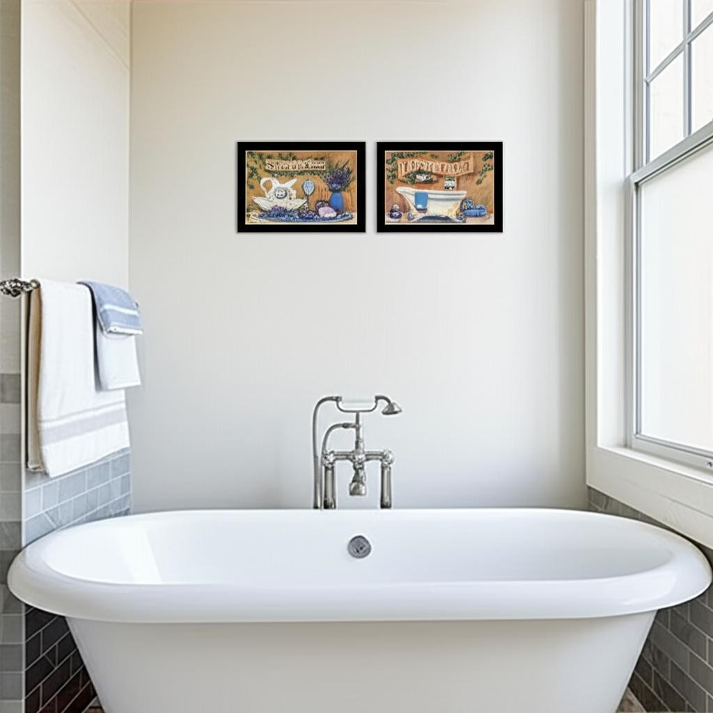 The set of three rest and relax with a lavender bath black framed bathroom wall art is the perfect decorative accessory for your home. This acrylic painting is a way to express your artistic style and add some fashion to your walls. Reproduced for you on paper, this hanging decorative accent will be a trendy and fashionable way to dress your walls. Adding this hanging wall art to your space to make your room feel more finished and attractive. Instantly liven up your space with this art that brings color and dimension to your walls. 8.5-inch h x 12.25-inch w x 1-inch d.