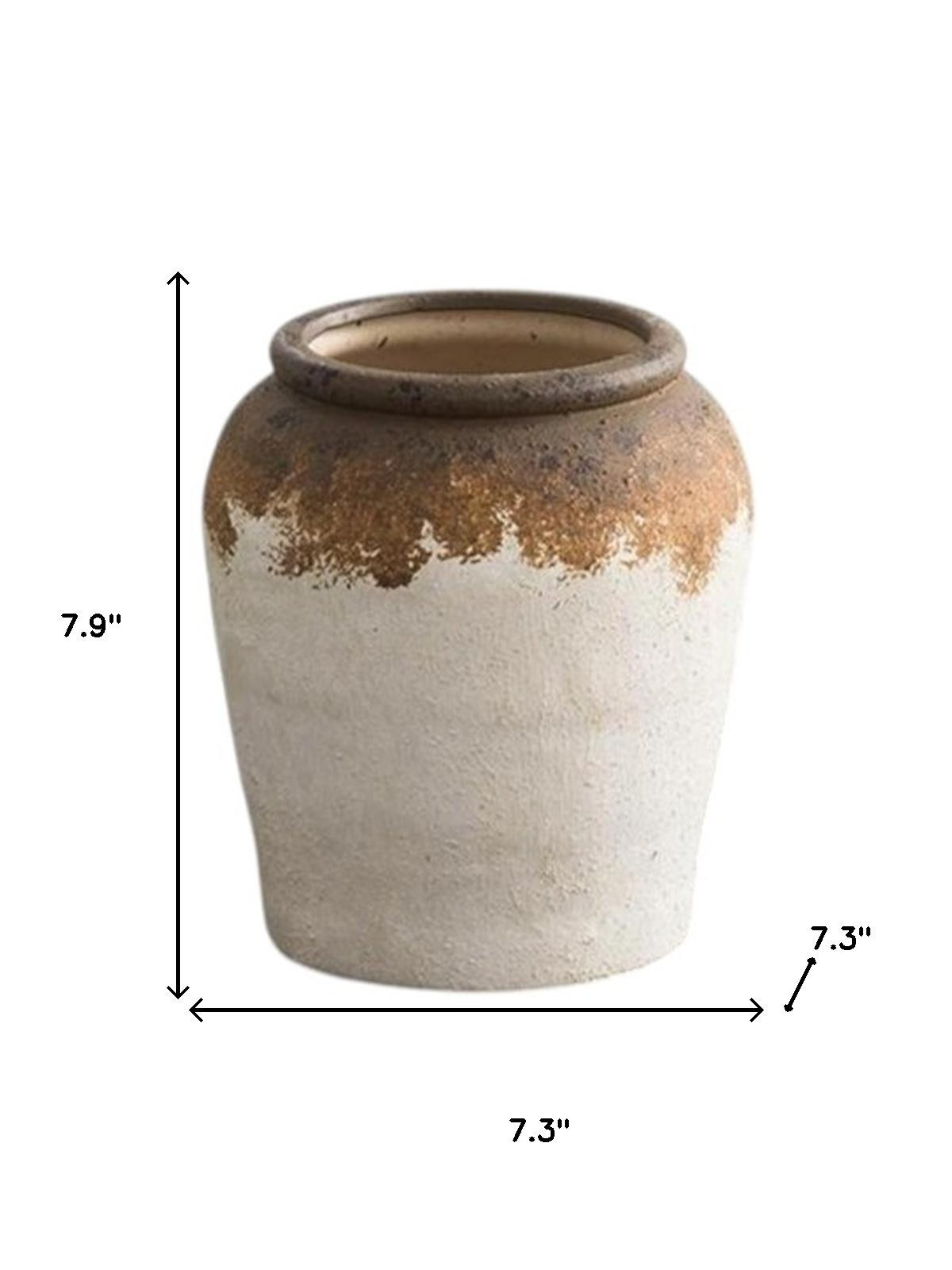 This 8-inch brown and white color block ceramic round table vase is the perfect accent for your living room, bedroom, dining room, or lounge. With its hand-painted finish, each piece showcases unique artistry that brings character to any space. The purposeful coat/paint distressing adds a charming vintage flair, making it an eye-catching centerpiece. Its round shape elegantly complements floral arrangements or stands beautifully on its own as a decorative piece. Crafted from durable ceramic, this vase balances style and functionality, enhancing your home decor with a touch of sophistication and warmth. 7.90-inch h x 7.30-inch w x 7.30-inch d.