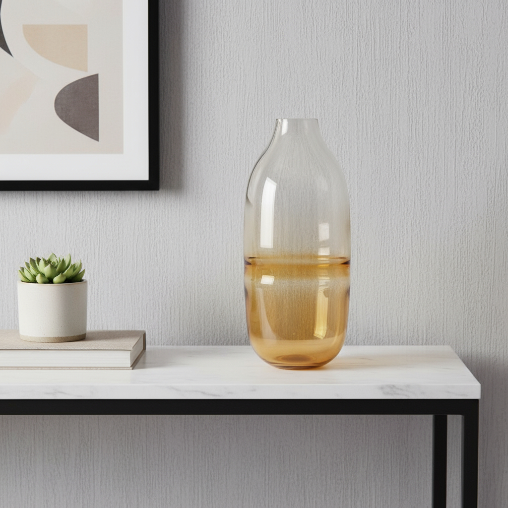 ombre round glass table vase, round glass table vase, glass table vase, brown ombre round glass table, ombre round glass table |