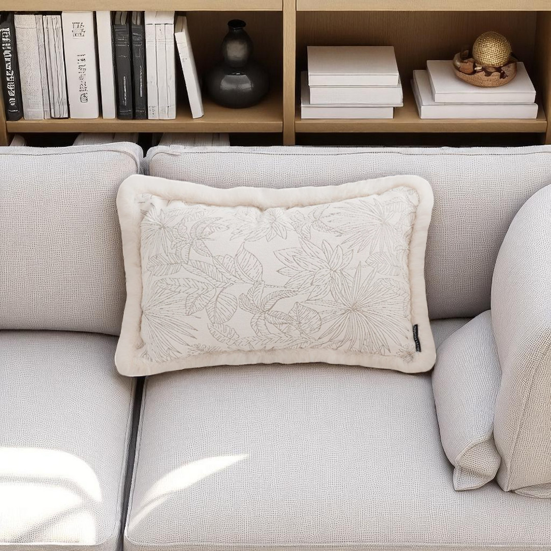 The perfect complement to your sofa, favorite chair, or bed, this 12-inch x 20-inch off white lumbar floral throw pillow with fringe is a great decorative accent. This off white colored decorative pillow is made from high grade polyester that is durable and long lasting. Decorative pillows are a great way to change up the look and feel of your space easily and quickly. A great decorative accessory to add color and dimension to your favorite chair, accent your sofa, or to use as part of your bed ensemble. 11.81-inch h x 19.69-inch w x 5.91-inch d.