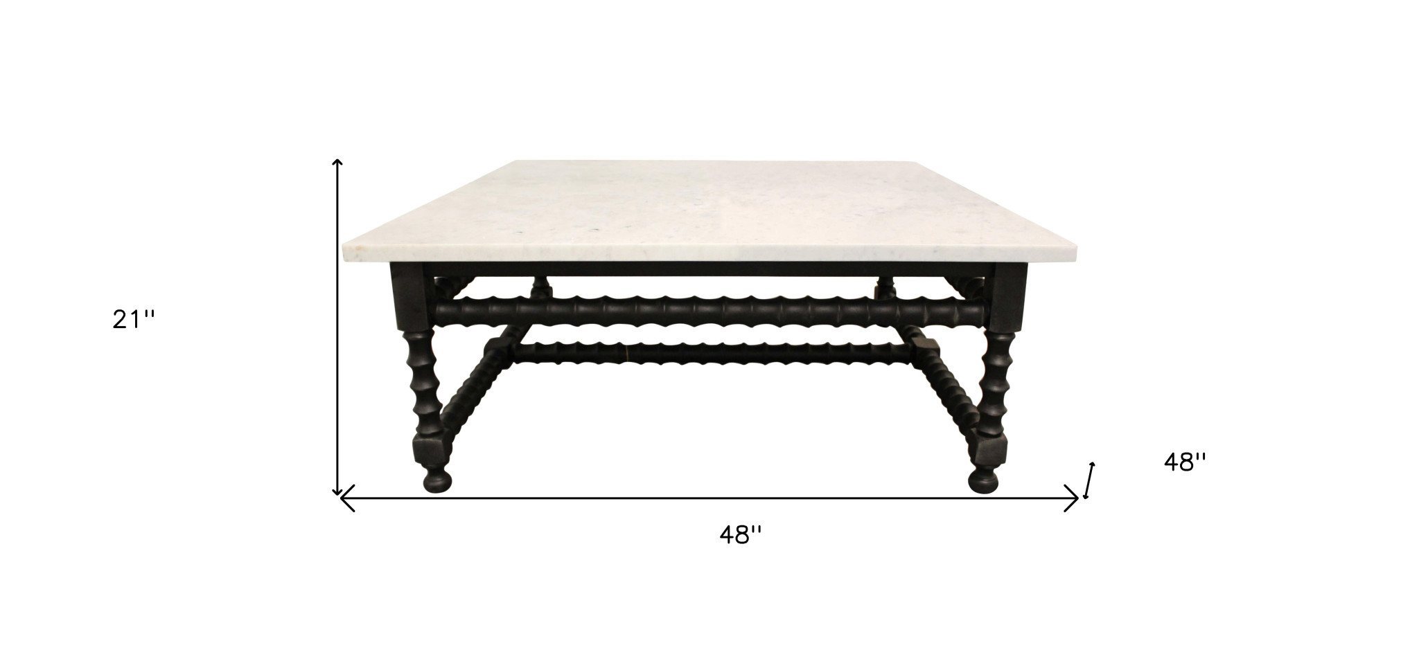Stylish and super sturdy, the 48-inch white and black genuine marble and solid wood square coffee table is an amazingly good looking coffee table that will compliment your living room. The base of this table is made from solid wood in a black color that creates a good looking visual contrast to the white marble tabletop. This square table features a fresh and stylish shape to give your room a visually pleasing accent. It has an attractive design that will definitely breathe some fresh air into your interior. 21-inch h x 48-inch w x 48-inch d.