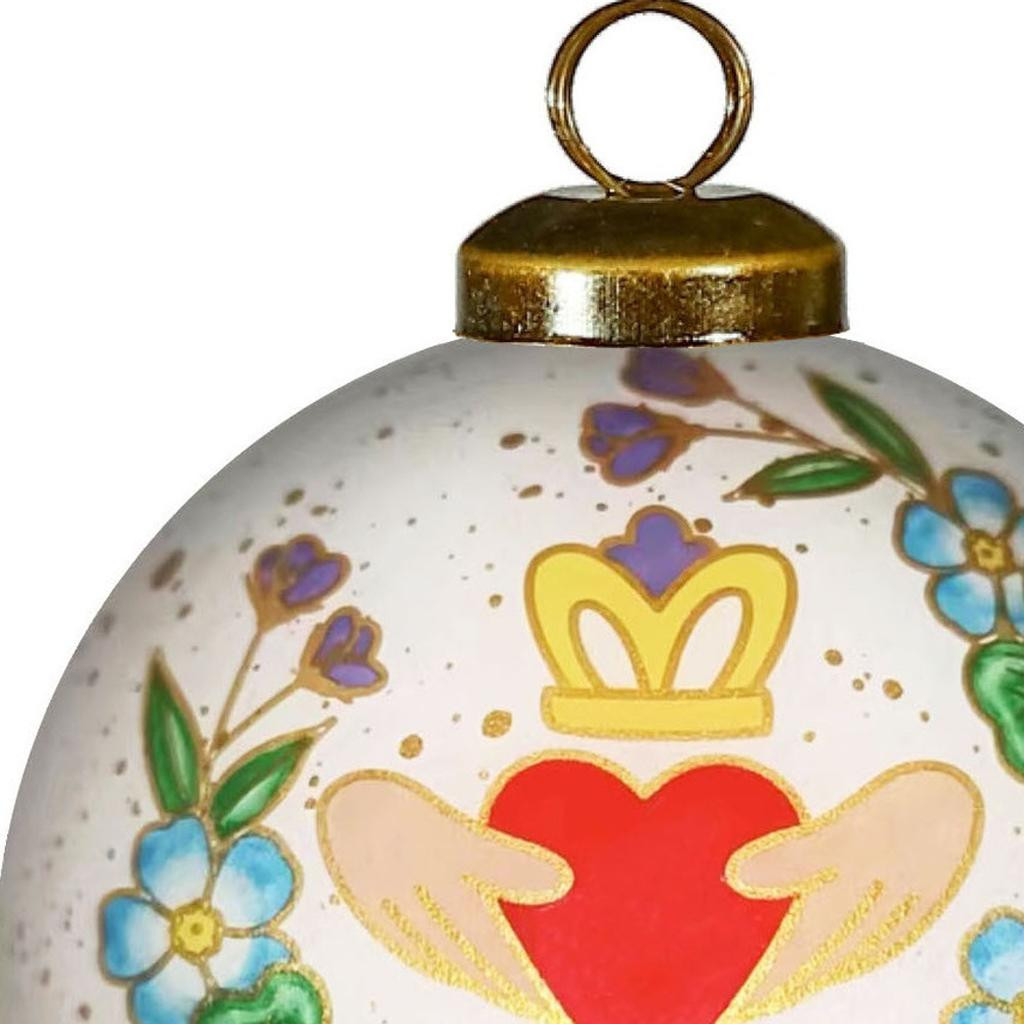 The claddagh irish hand painted glass ball ornament adds a touch of elegance to your festive decor. Designed as a hanging ornament, it brings charm and tradition to your holiday celebrations. Made from high-quality glass, this ornament features intricate hand-painted designs that embody the spirit of christmas. Its classic ball shape allows for versatile placement on your tree or in any festive display. Celebrate the season with a piece that not only enhances your decor but also reflects timeless cultural heritage. With its vibrant colors and detailed craftsmanship, this ornament is sure to become a cherished part of your holiday traditions for years to come. 3.00-inch h x 3.00-inch w x 3.00-inch d.