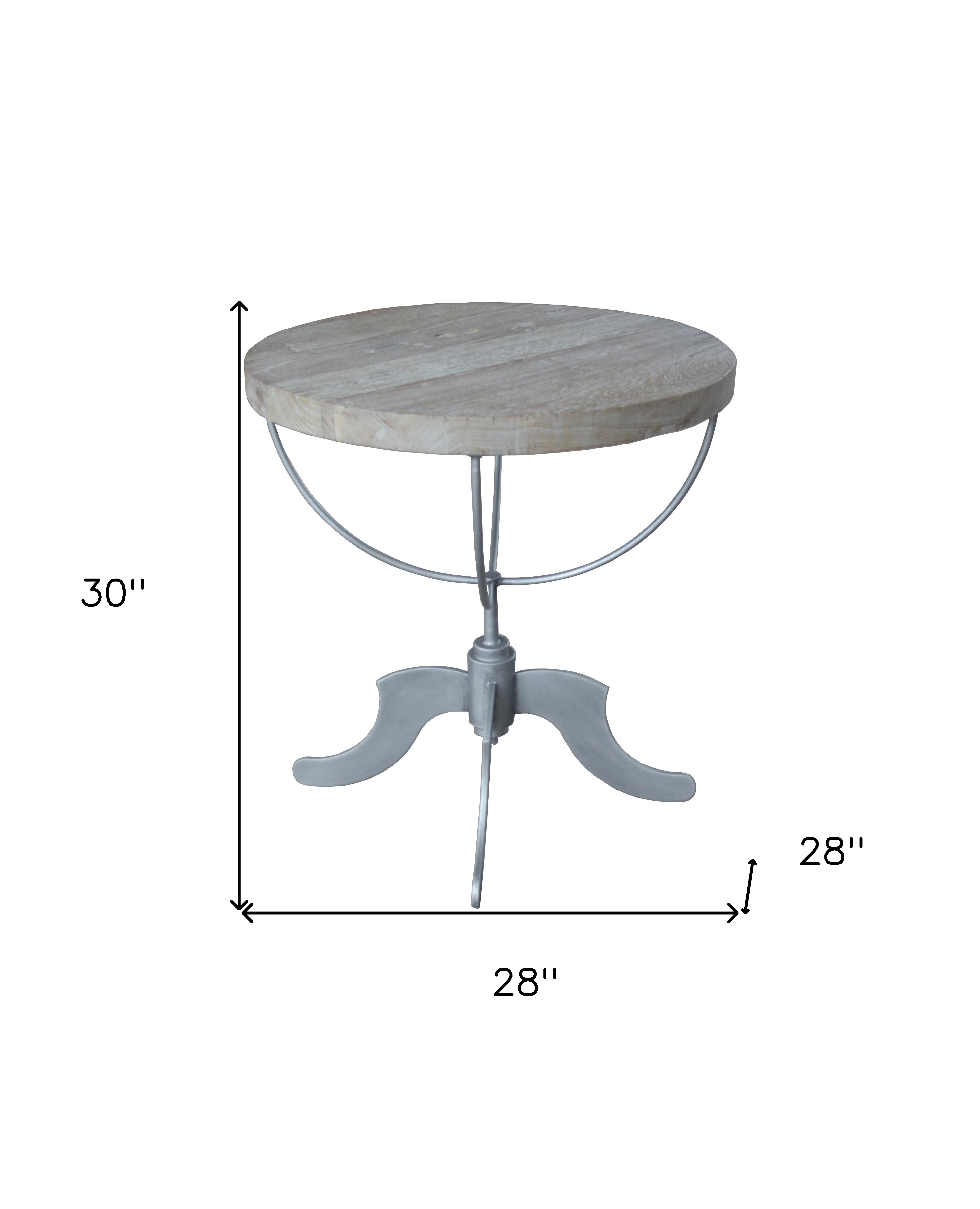 30" brown distressed reclaimed wood, iron round pedestal end table, brown distressed reclaimed wood iron, distressed reclaimed wood iron round, reclaimed wood iron round pedestal |