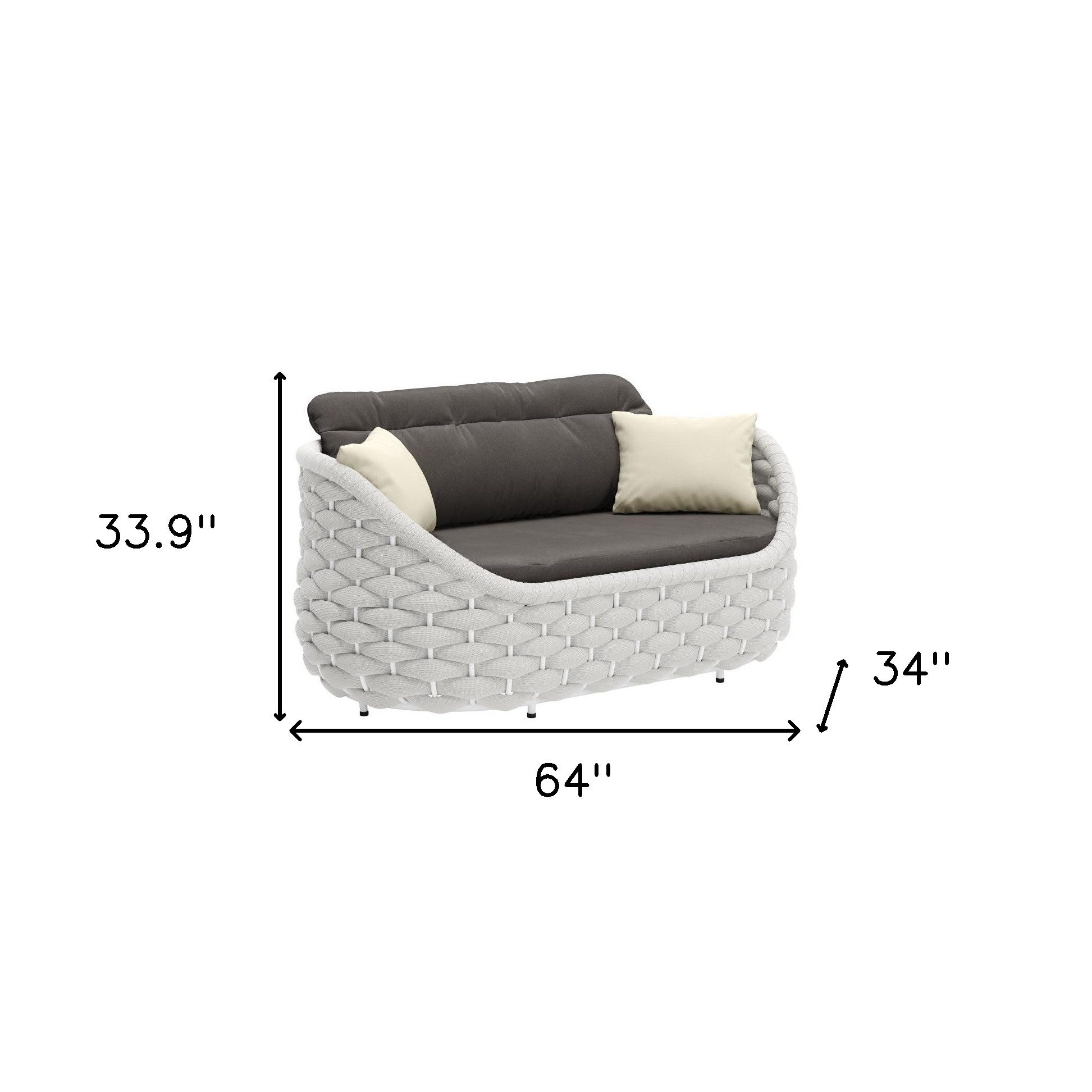 Designed for comfort and good looks, this 64-inch gray fabric sofa is a great option to anchor your space. Solid colors give you lots of decorative options and are easy to work into your decor scheme. Removable back cushions make this sofa easy to manage. Fixed arms offer a comfy place to rest. A great showpiece for your room, this sofa is a must have. 33.90-inch h x 64.00-inch w x 34.00-inch d.