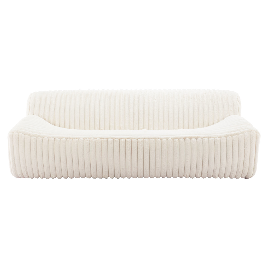 Transform your home's interior with this luxurious 89-inch cream faux fur sofa. Solid colors give you lots of decorative options and are easy to work into your decor scheme. Designed with an updated and refreshing style, this sofa is armless to create that unique contemporary or modern aesthetic. Cream solid wood legs effortlessly elevate the room and add a touch of contemporary design. Built to last, this sofa will be a great centerpiece for your room. 28.70-inch h x 89.00-inch w x 38.00-inch d.