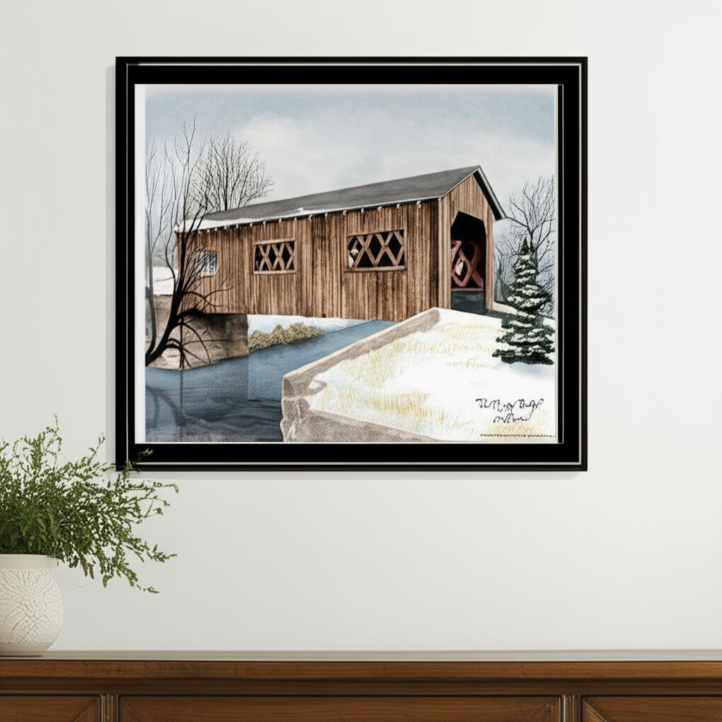 bridges black framed wall art, winter covered bridges black framed, covered bridges black framed wall, set winter covered bridges black, bridges black framed |